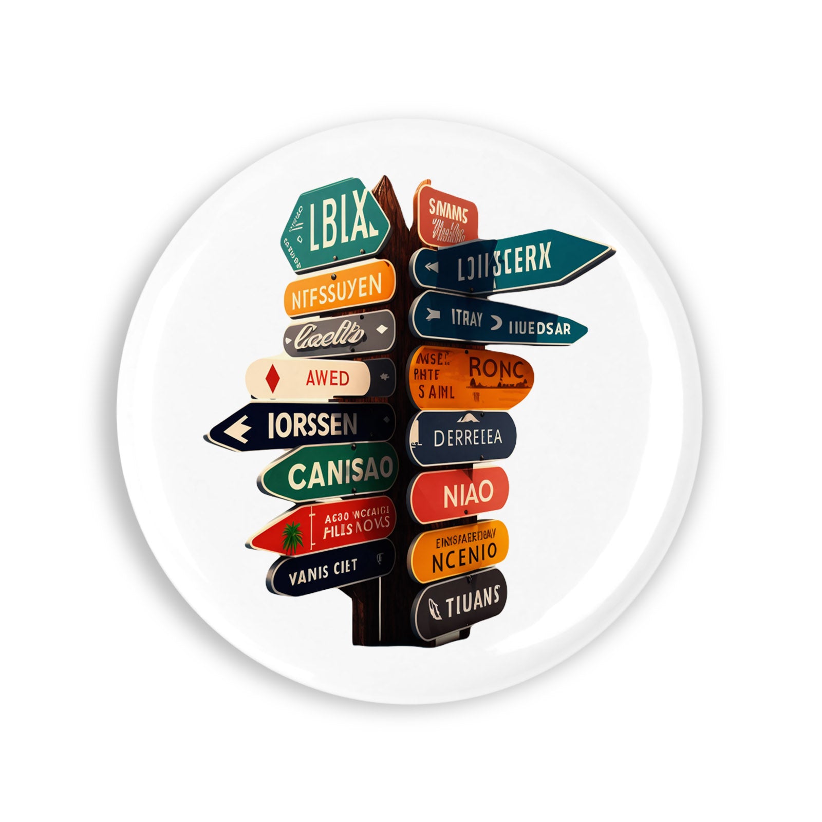 Set 4 insigne, Semne indicatoare pentru directie de drum, NO9092, Metal, 44 mm, Multicolor