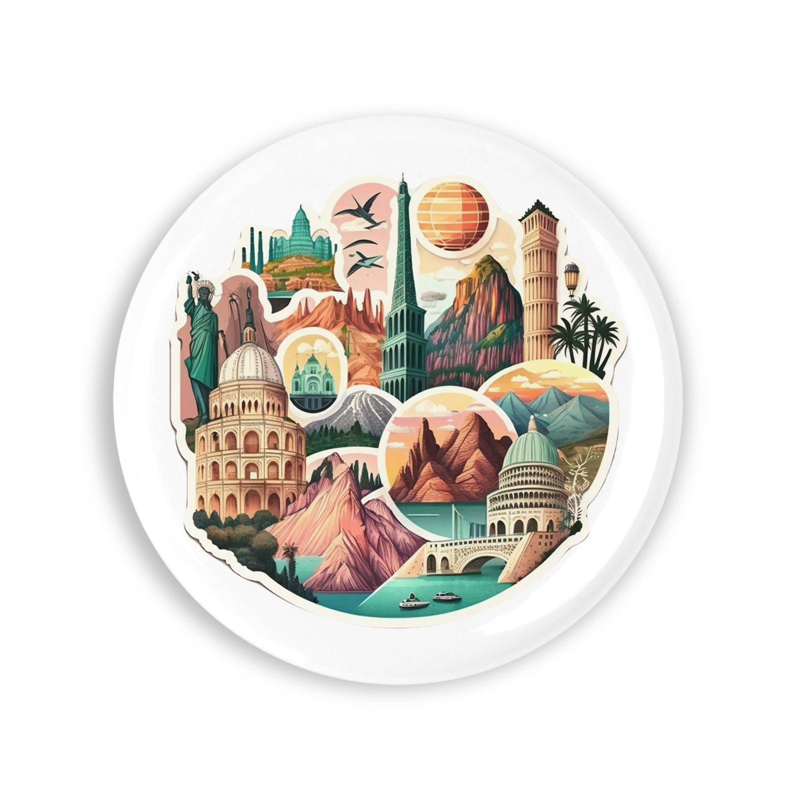 Set 4 insigne, Set simboluri de calatorie, NO11624, Metal, 44 mm, Multicolor