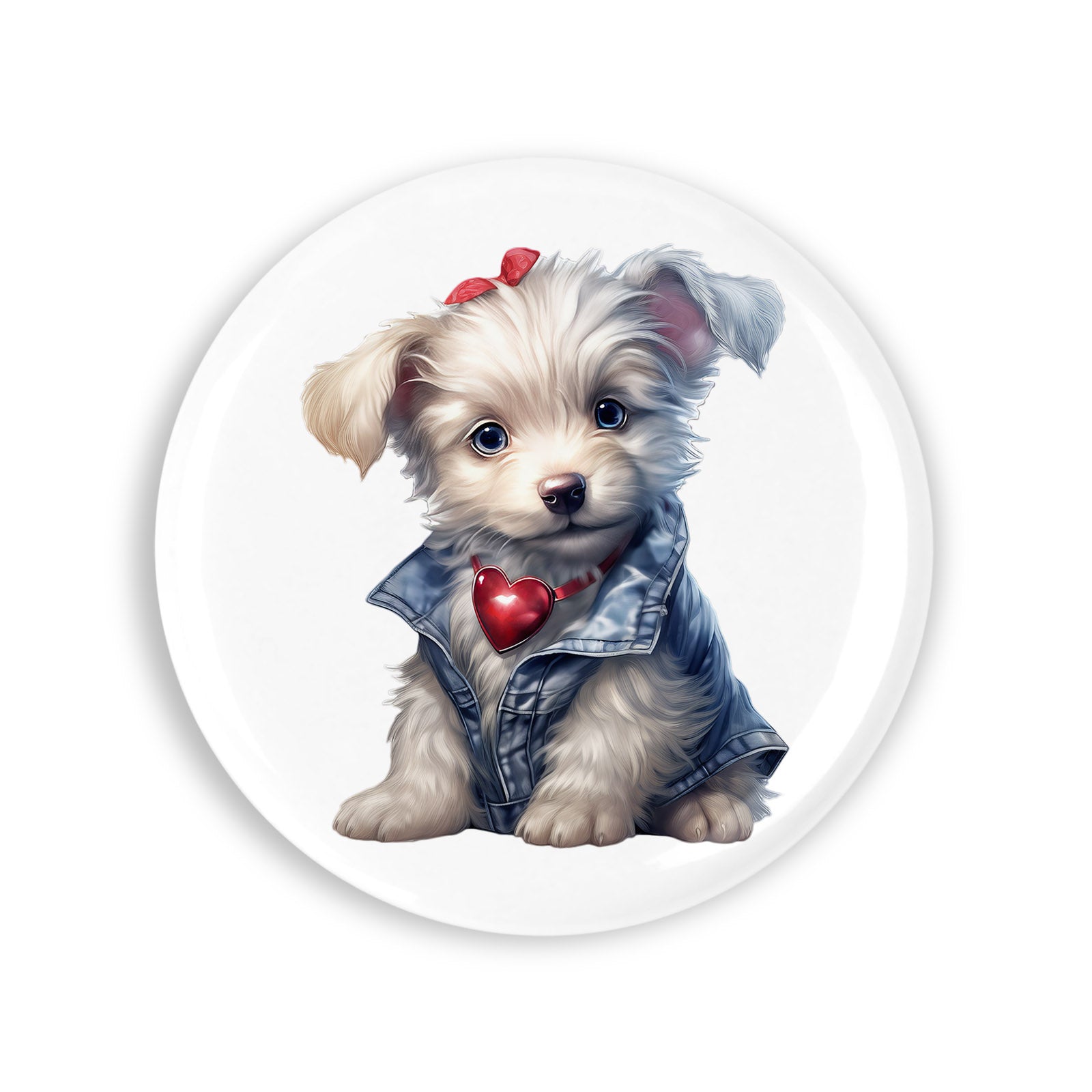 Set 4 insigne, Sfantul Valentin Catelus alb cu vesta, NO3361, Metal, 44 mm, Multicolor