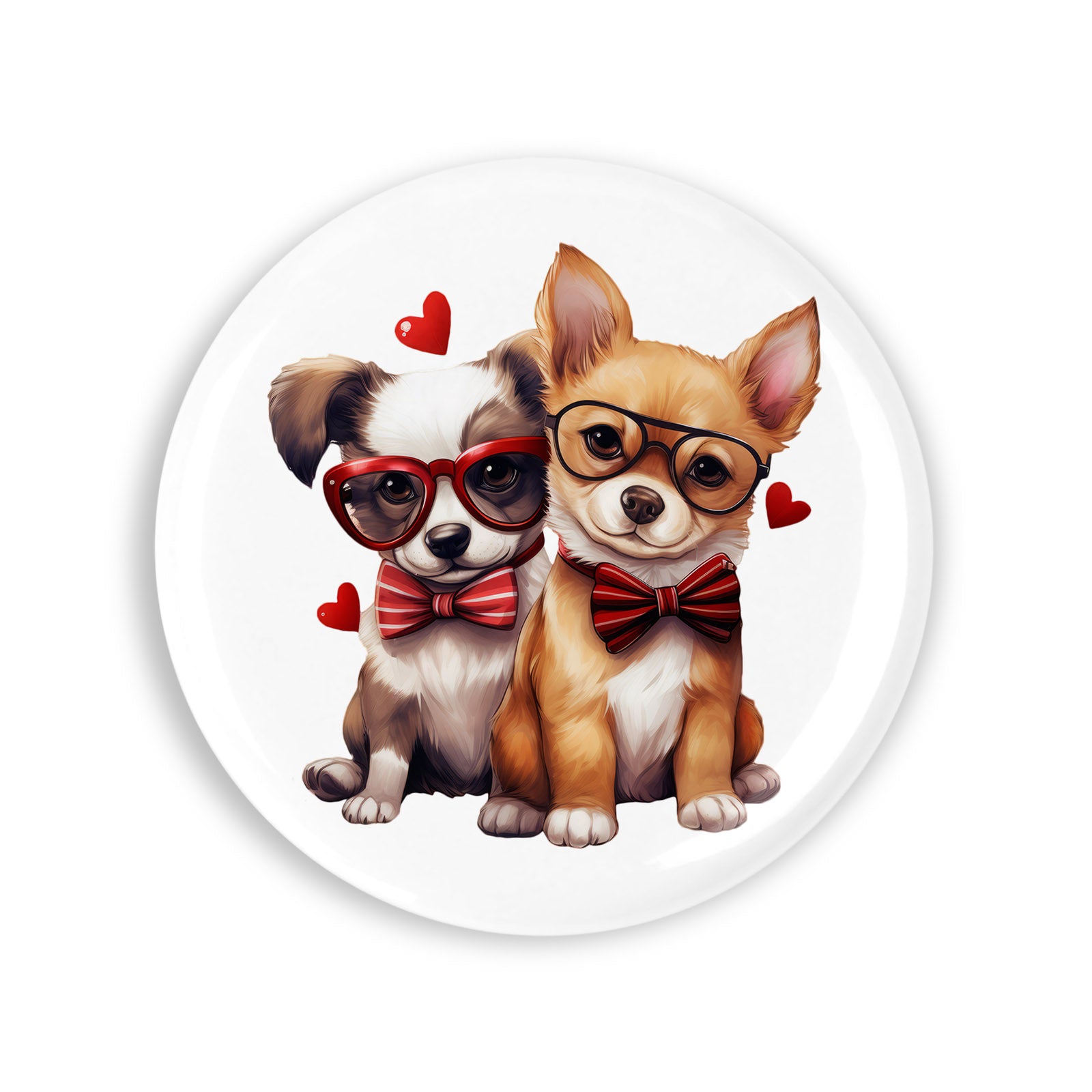 Set 4 insigne, Sfantul Valentin catelusii indragostiti, NO2073, Metal, 44 mm, Multicolor
