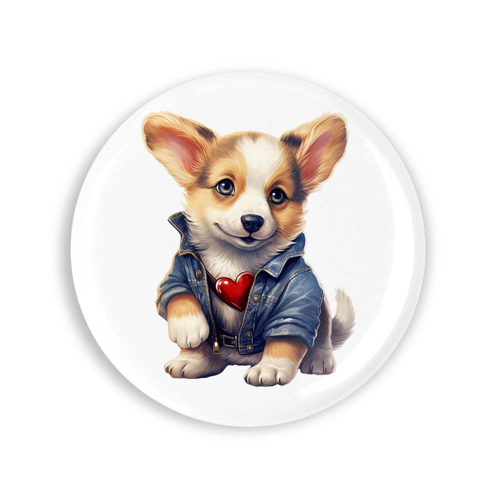 Set 4 insigne, Sfantul Valentin Catelusul cu geaca de blugi, NO2744, Metal, 44 mm, Multicolor