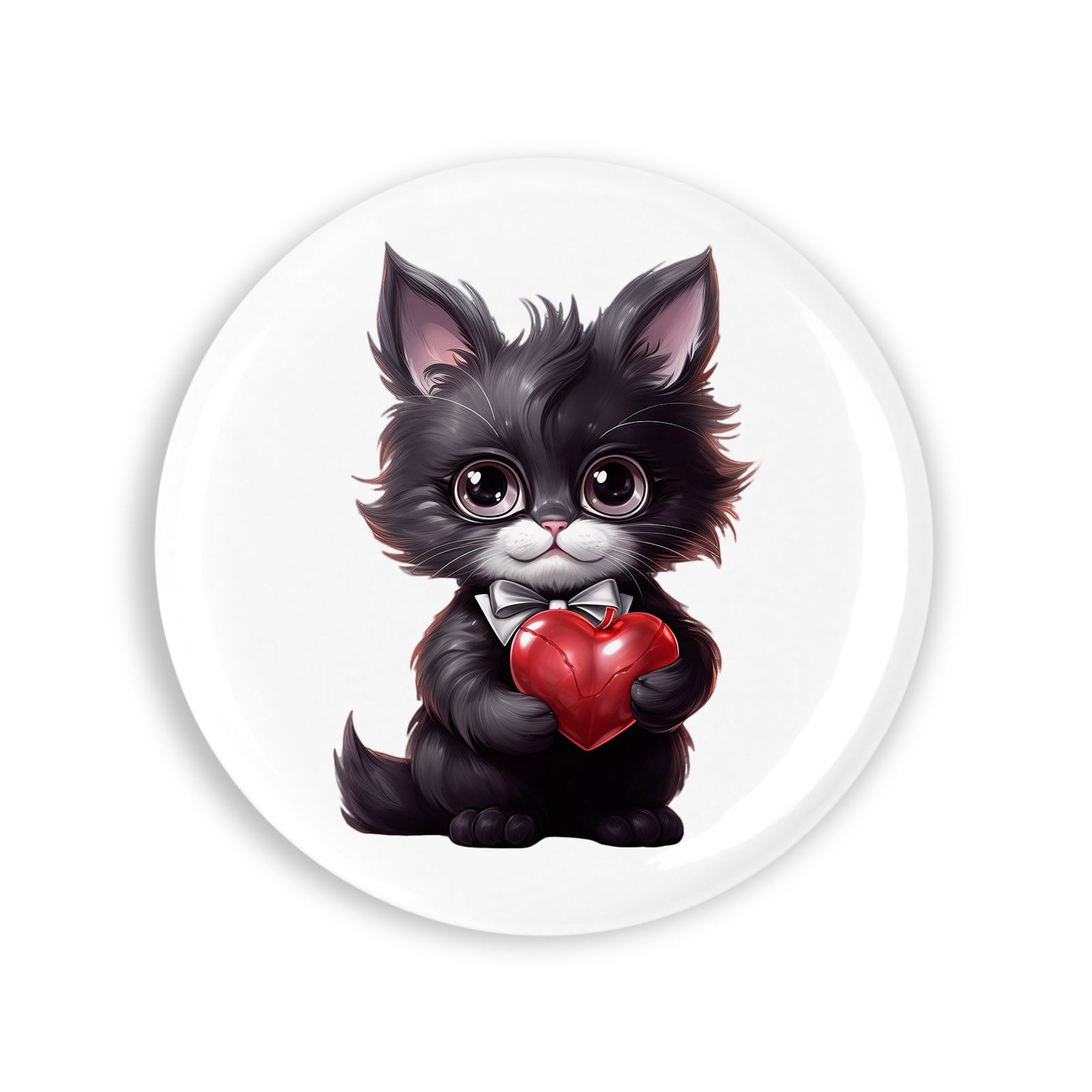 Set 4 insigne, Sfantul Valentin Pisicuta neagra ciufulita, NO4704, Metal, 44 mm, Multicolor