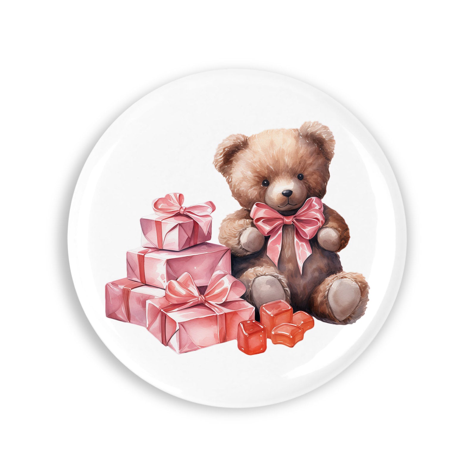 Set 4 insigne, Sfantul Valentin Urs cu cadouri, NO4909, Metal, 44 mm, Multicolor