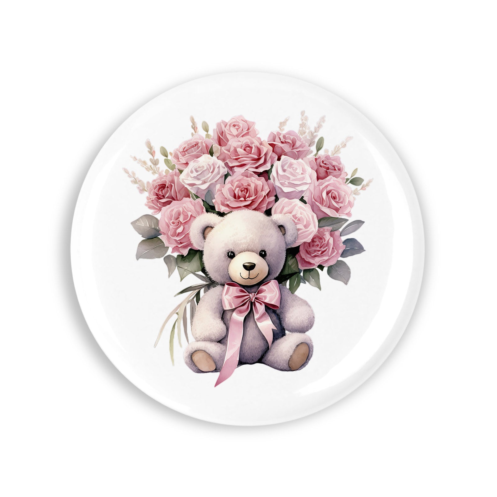 Set 4 insigne, Sfantul Valentin Urs cu trandariri alb si roz, NO1296, Metal, 44 mm, Multicolor