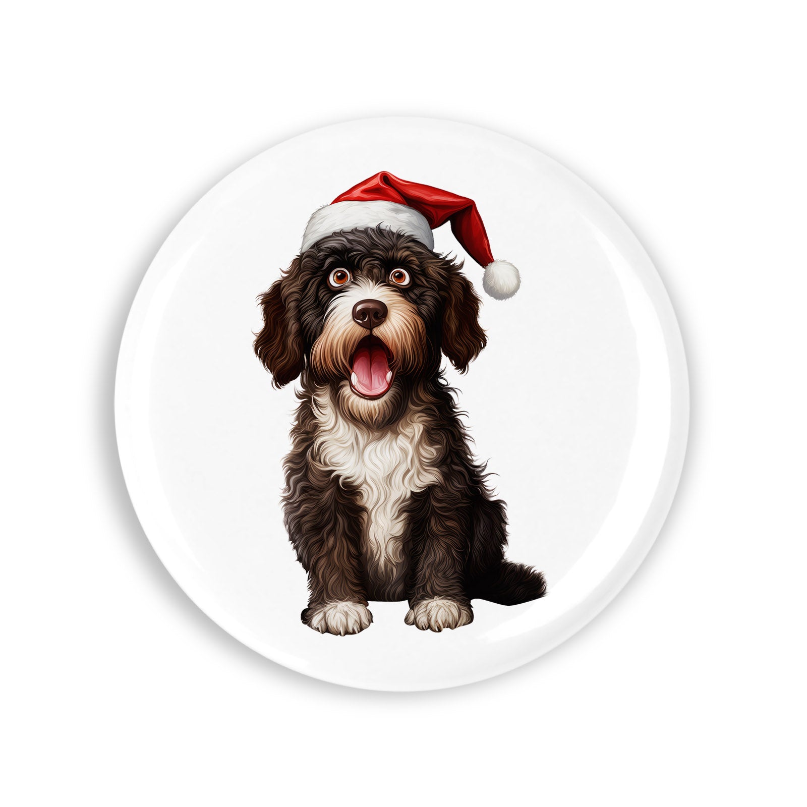 Set 4 insigne, Shih Tzu cu caciula de craciun, NO2519, Metal, 44 mm, Multicolor