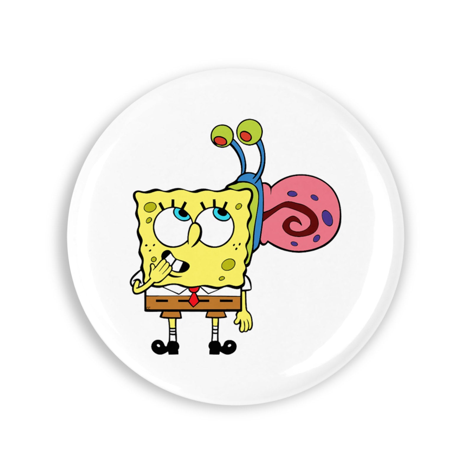 Set 4 insigne, SpongeBob in spate cu melcul Gary Meme, NO8766, Metal, 44 mm, Multicolor