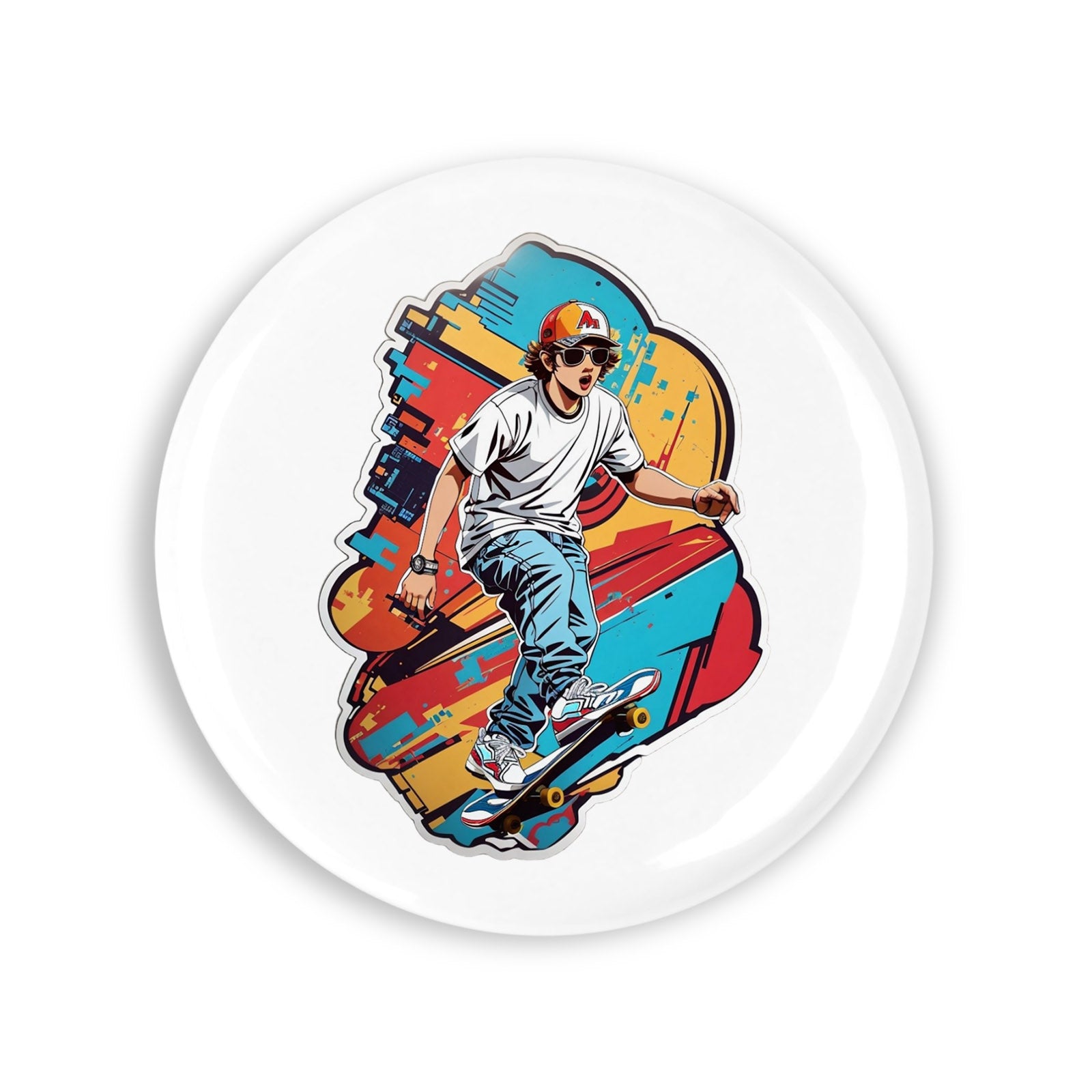 Set 4 insigne, Sportiv cu skateboard, NO7373, Metal, 44 mm, Multicolor