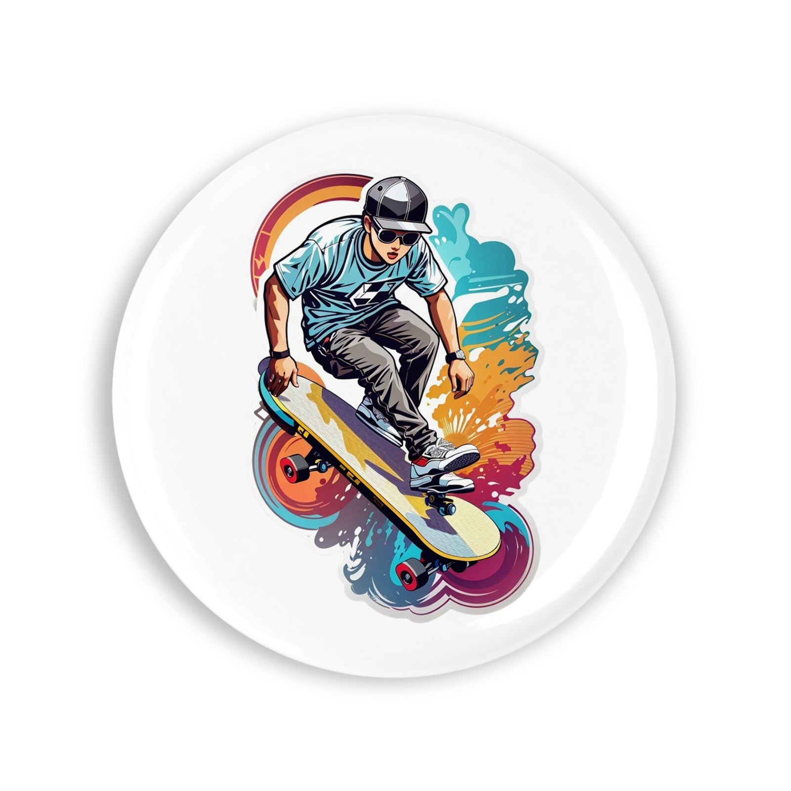 Set 4 insigne, Sportiv cu skateboard, NO7376, Metal, 44 mm, Multicolor