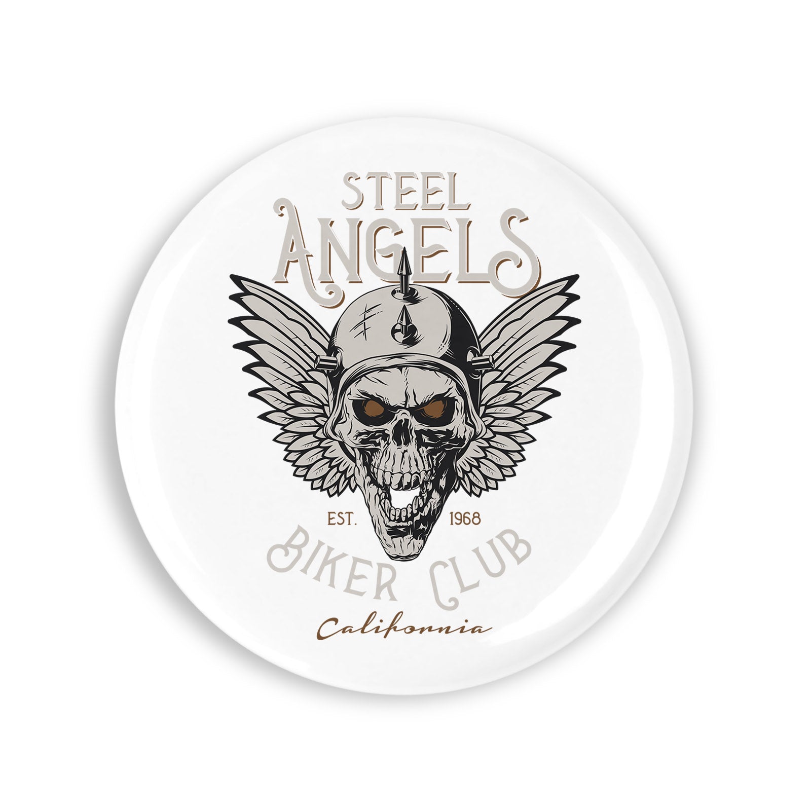 Set 4 insigne, Stell angels biker club California, NO4107, Metal, 44 mm, Multicolor