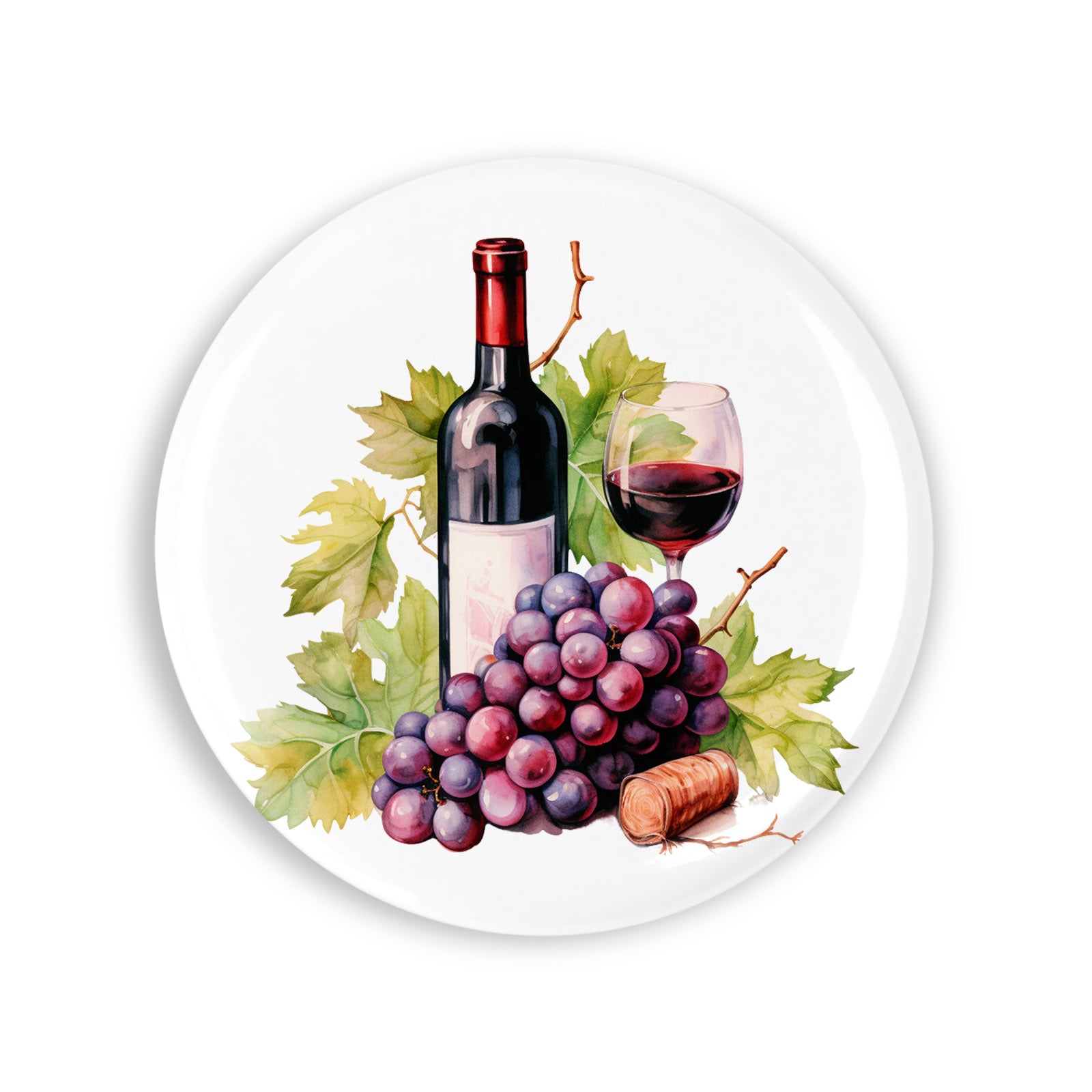 Set 4 insigne, Sticla cu vin rosu pahar si vita de vie cu strugure, NO490, Metal, 44 mm, Multicolor