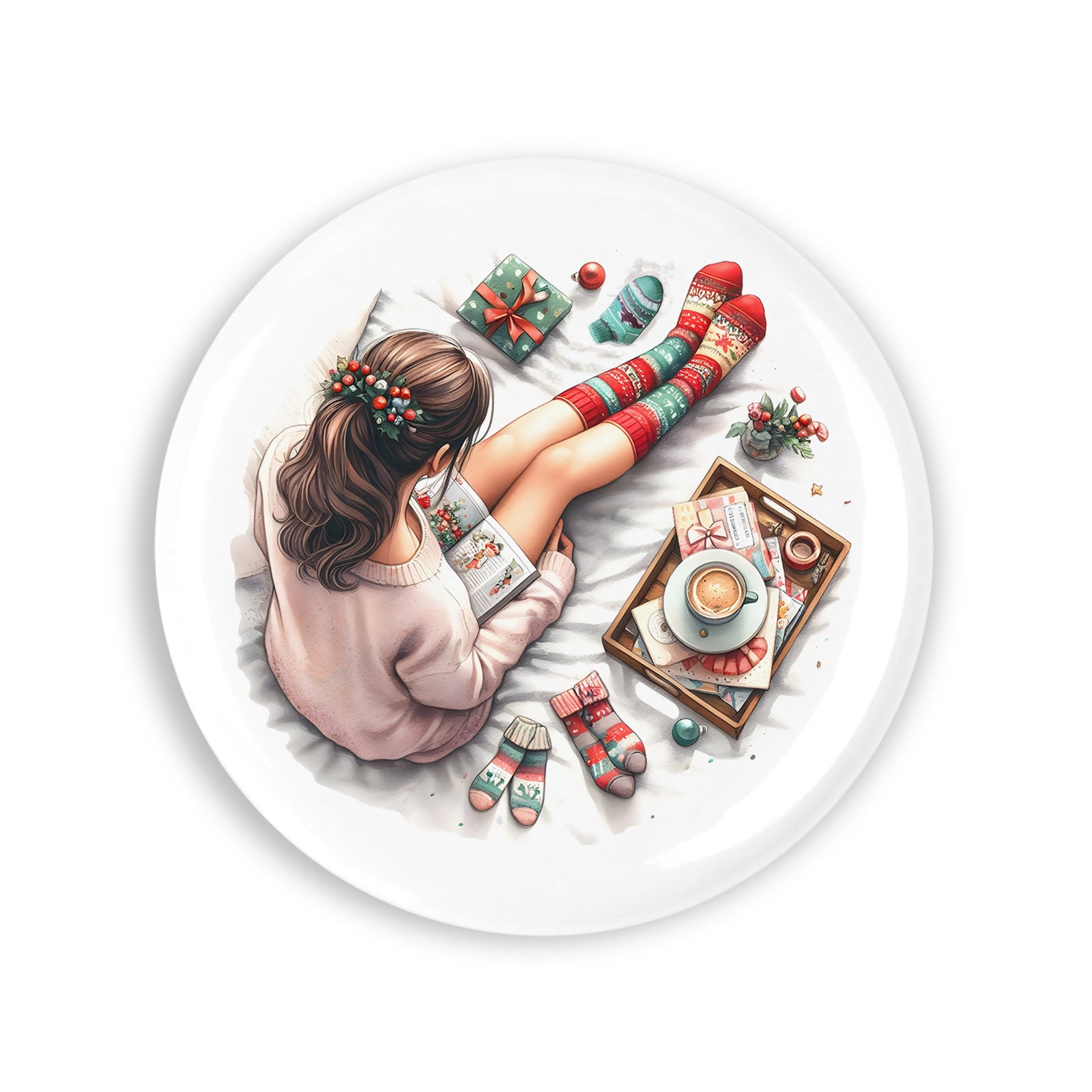 Set 4 insigne, Tablou de craciun Althea, NO3686, Metal, 44 mm, Multicolor