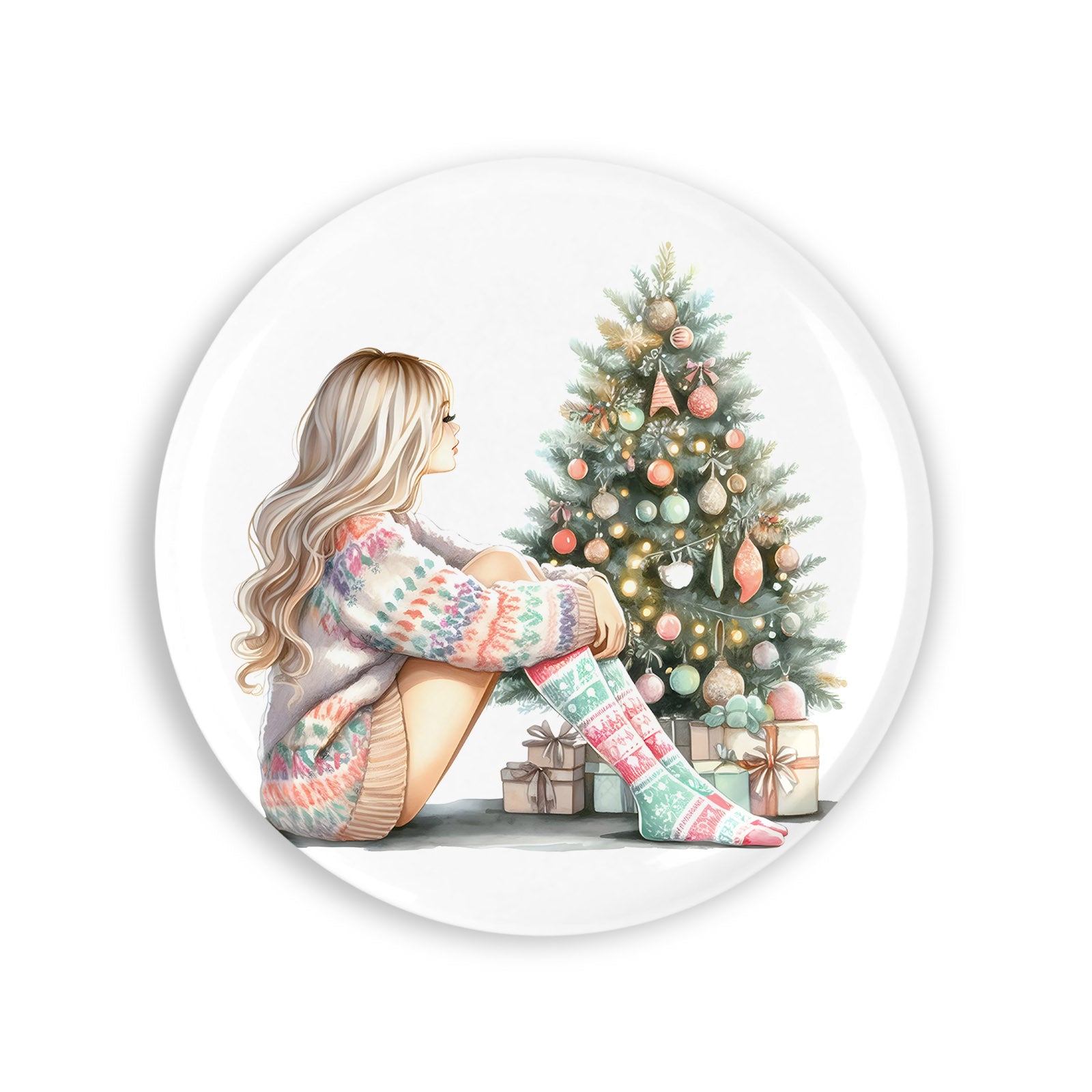 Set 4 insigne, Tablou de craciun Calliope, NO3436, Metal, 44 mm, Multicolor
