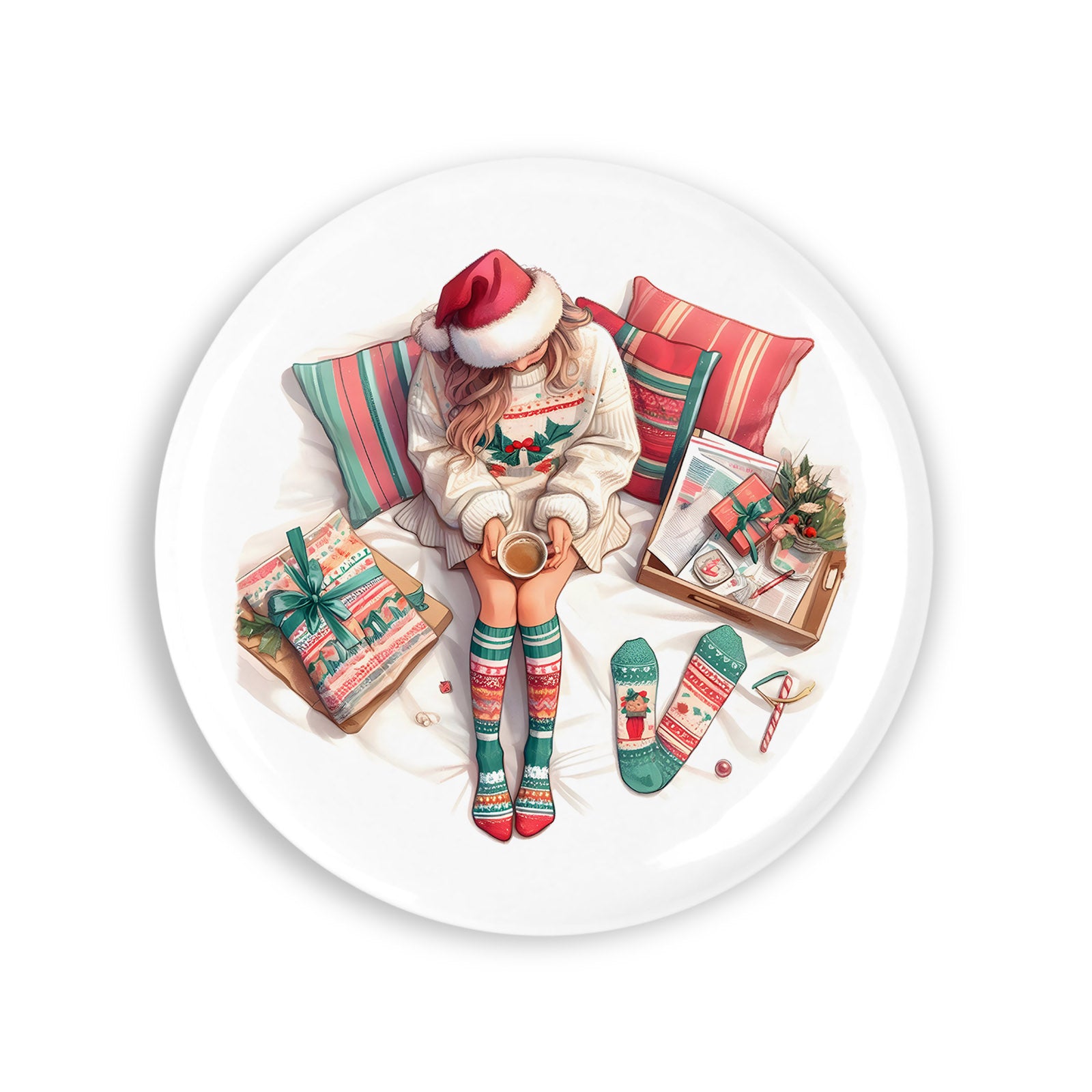 Set 4 insigne, Tablou de craciun Eudora, NO3543, Metal, 44 mm, Multicolor