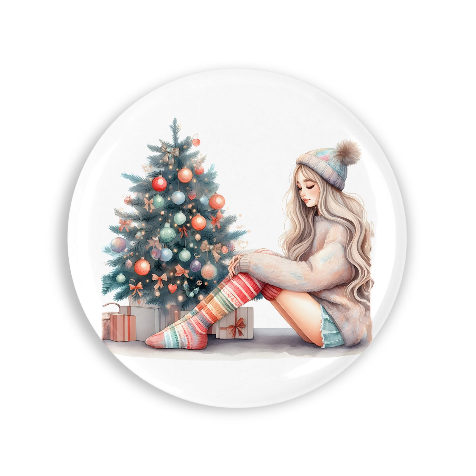Set 4 insigne, Tablou de craciun Kaya, NO5874, Metal, 44 mm, Multicolor