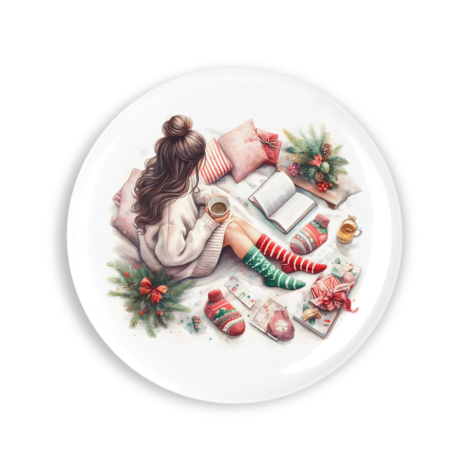 Set 4 insigne, Tablou de craciun Ophelia, NO2056, Metal, 44 mm, Multicolor