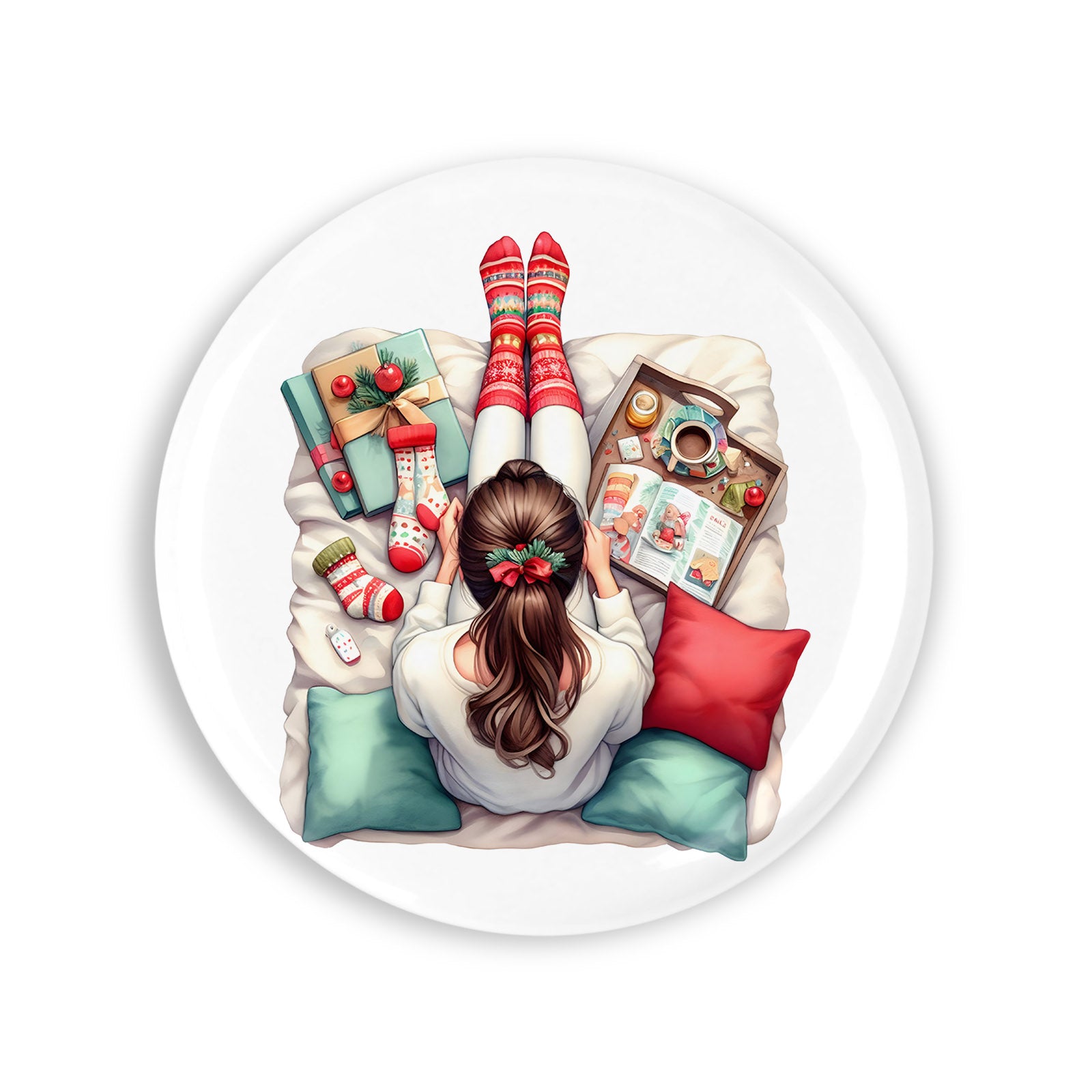 Set 4 insigne, Tablou de craciun Selena, NO2048, Metal, 44 mm, Multicolor