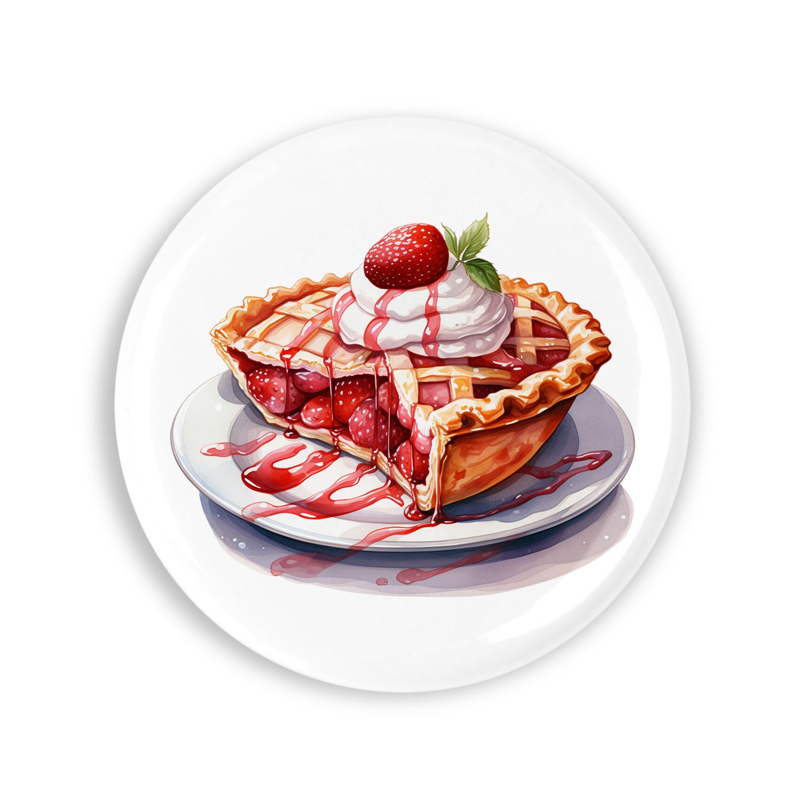Set 4 insigne, Tarta cu capsune, NO4563, Metal, 44 mm, Multicolor
