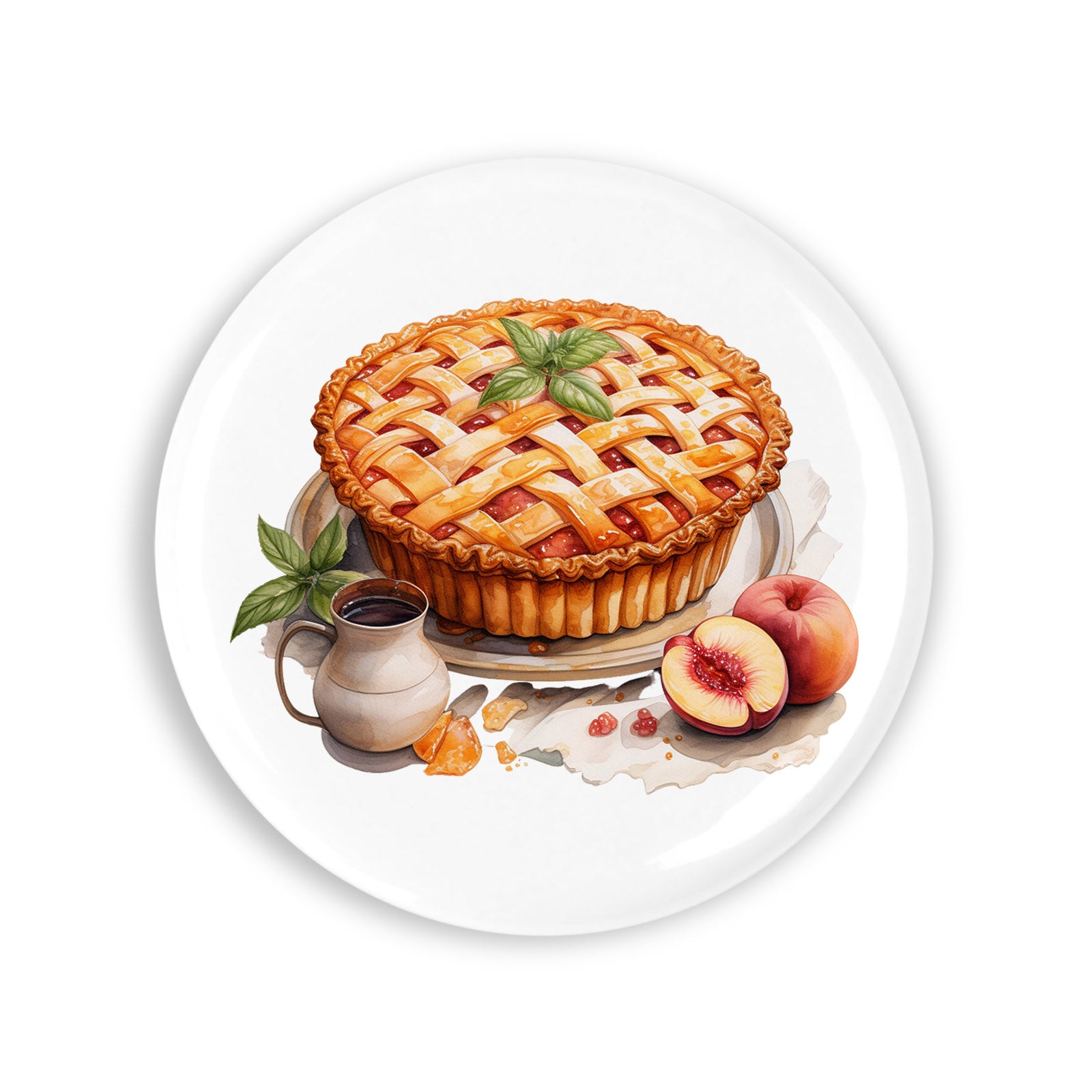 Set 4 insigne, Tarta cu piersici si cana cu cafea, NO3781, Metal, 44 mm, Multicolor