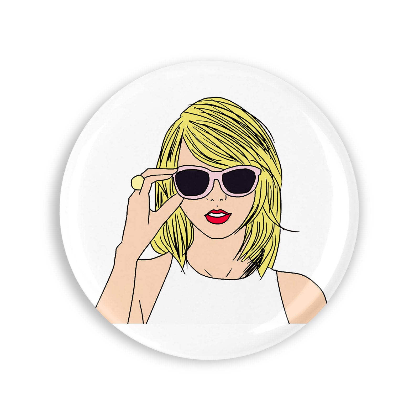 Set 4 insigne, Taylor Swift cu ochelari, NO3729, Metal, 44 mm, Multicolor