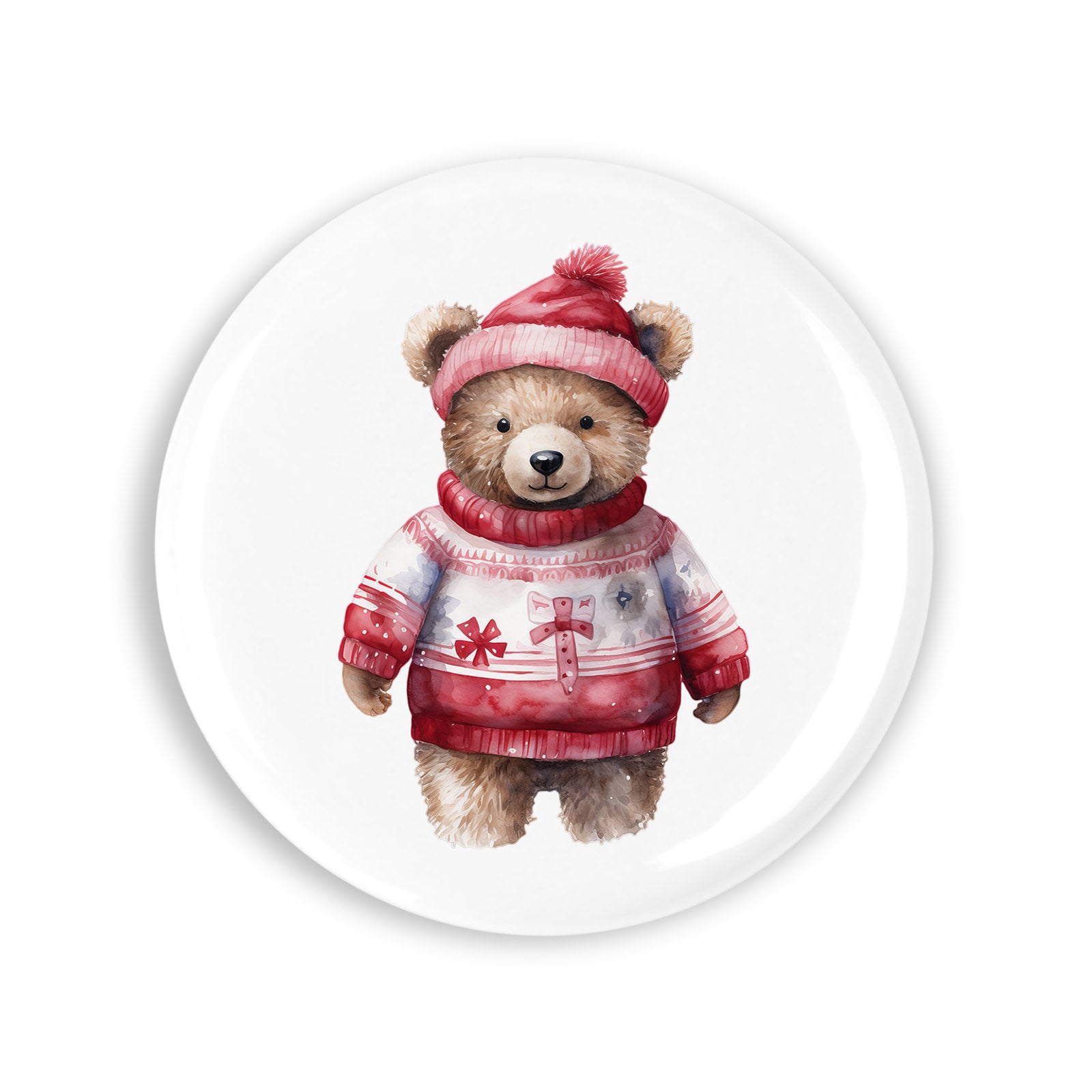 Set 4 insigne, Urs cu caciula si pulovar de craciun, NO2829, Metal, 44 mm, Multicolor
