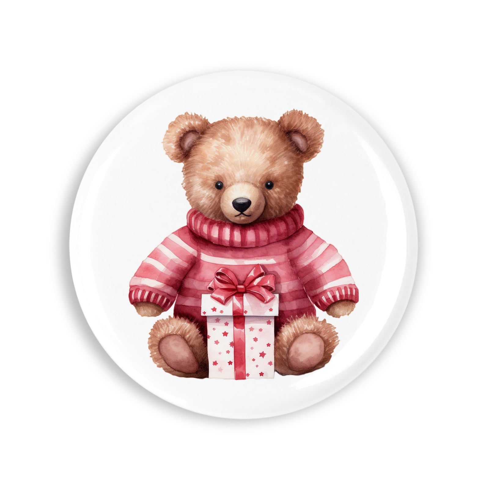 Set 4 insigne, Urs cu cadou de craciun, NO6066, Metal, 44 mm, Multicolor