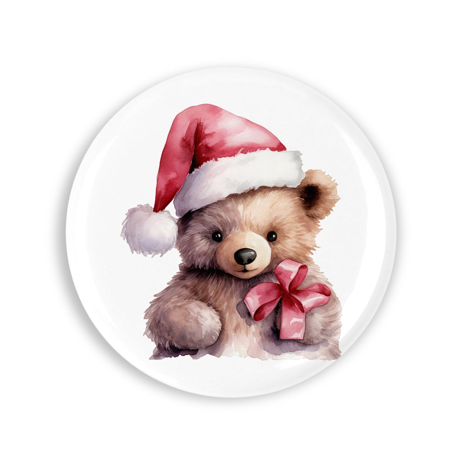 Set 4 insigne, Urs de craciun cu funda in piept, NO599, Metal, 44 mm, Multicolor