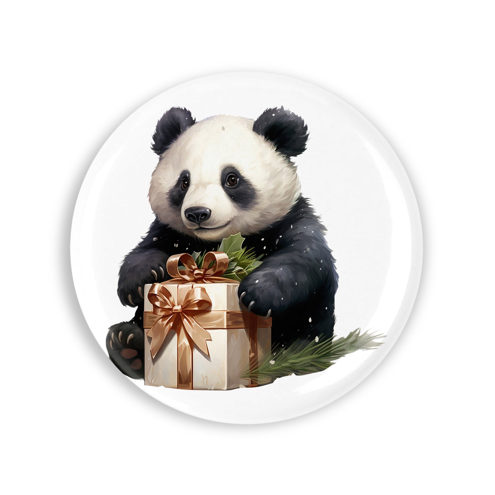 Set 4 insigne, Urs panda cu cadou, NO826, Metal, 44 mm, Multicolor