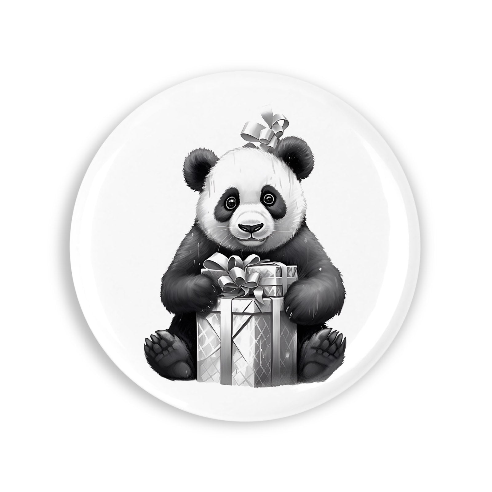 Set 4 insigne, Urs Panda cu cadouri si funda in cap, NO4746, Metal, 44 mm, Multicolor
