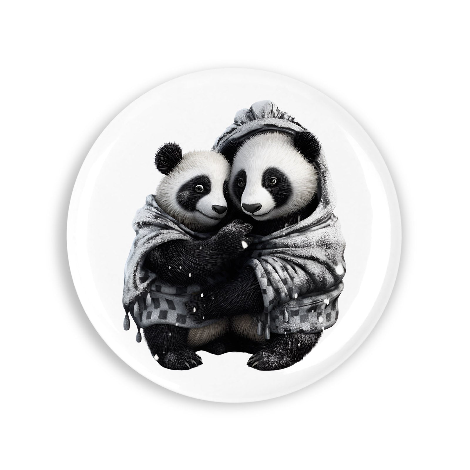 Set 4 insigne, Ursi panda imbratisati, NO4453, Metal, 44 mm, Multicolor