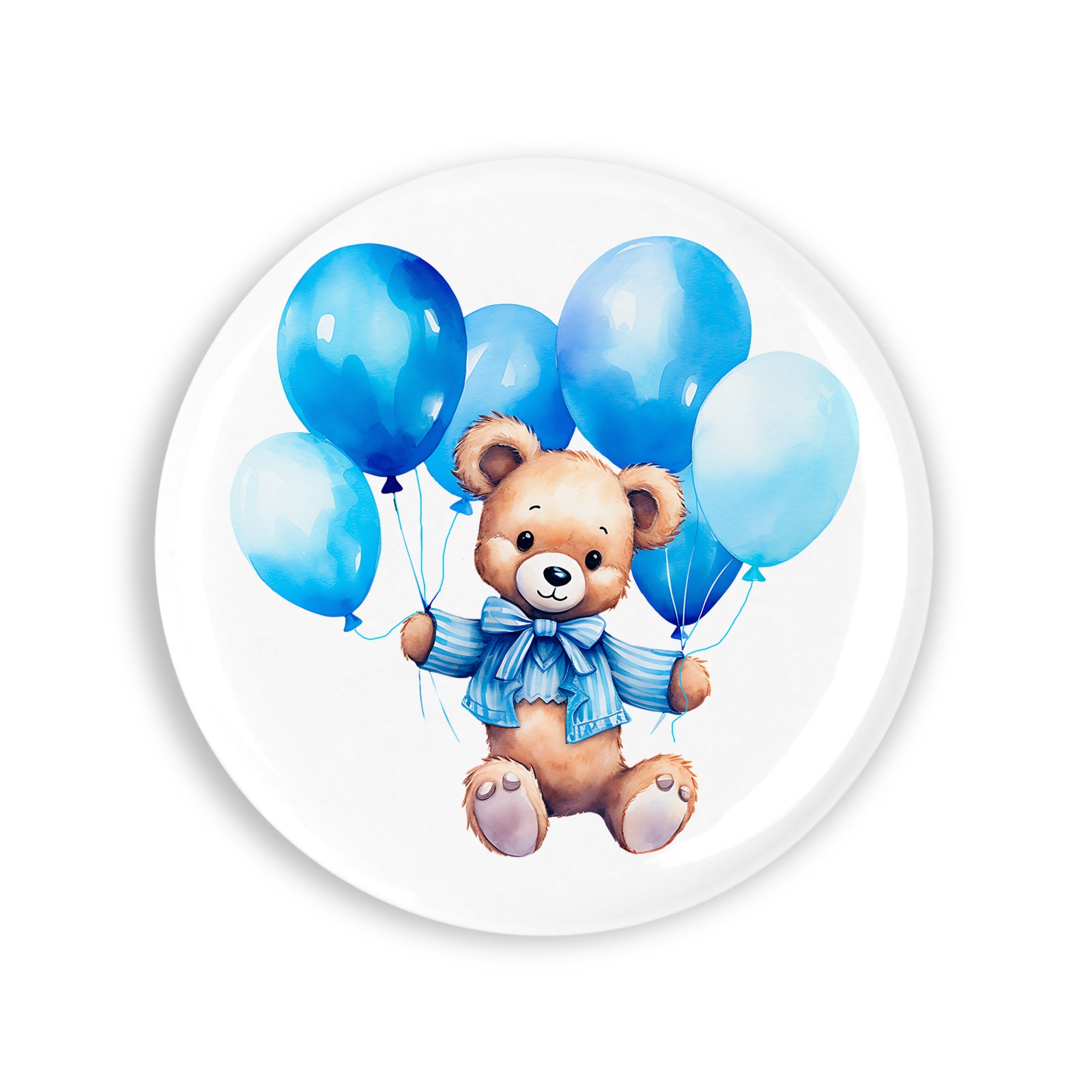 Set 4 insigne, Ursul cu baloane albastre, NO5785, Metal, 44 mm, Multicolor