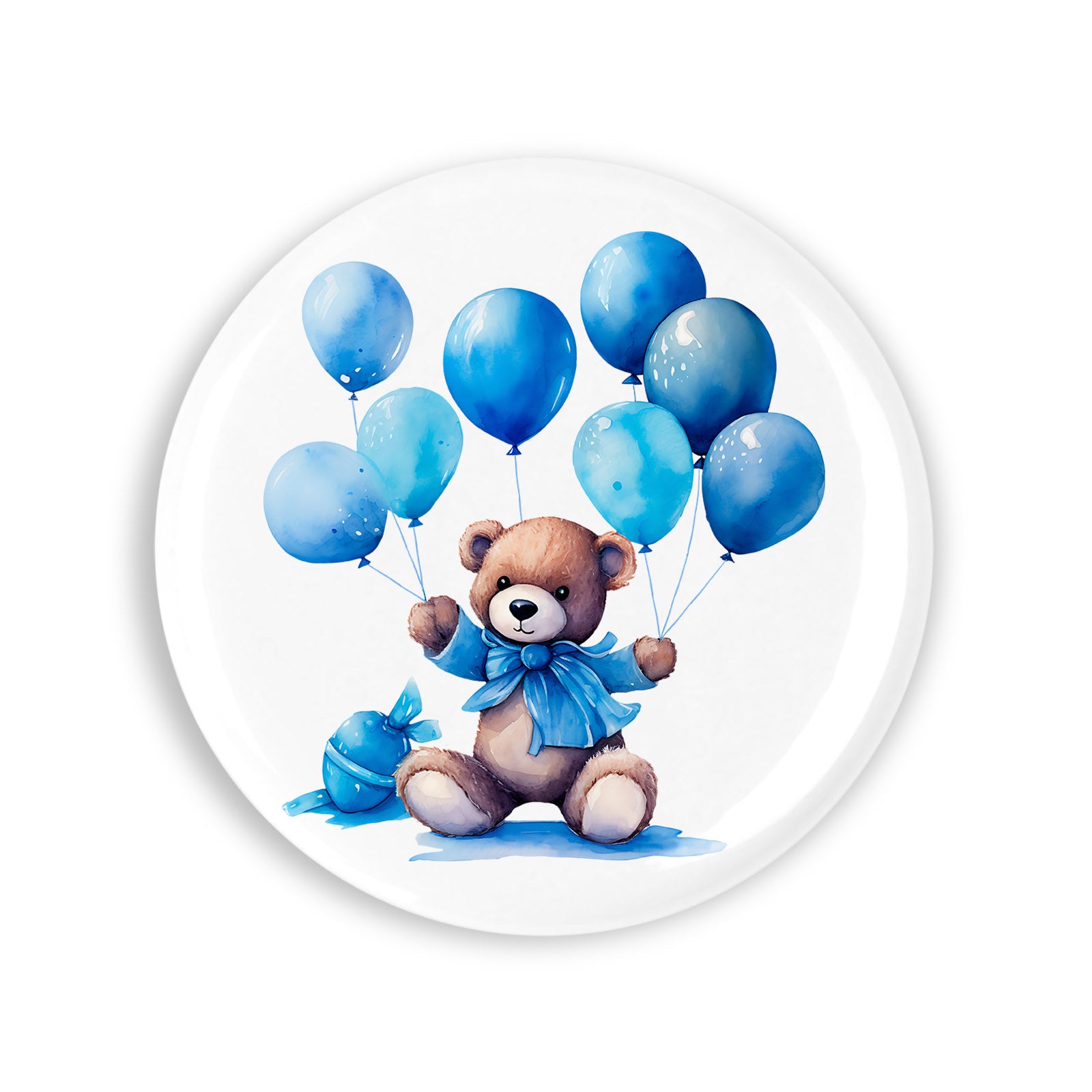 Set 4 insigne, Ursul cu jacheta albastraa si baloane, NO4982, Metal, 44 mm, Multicolor