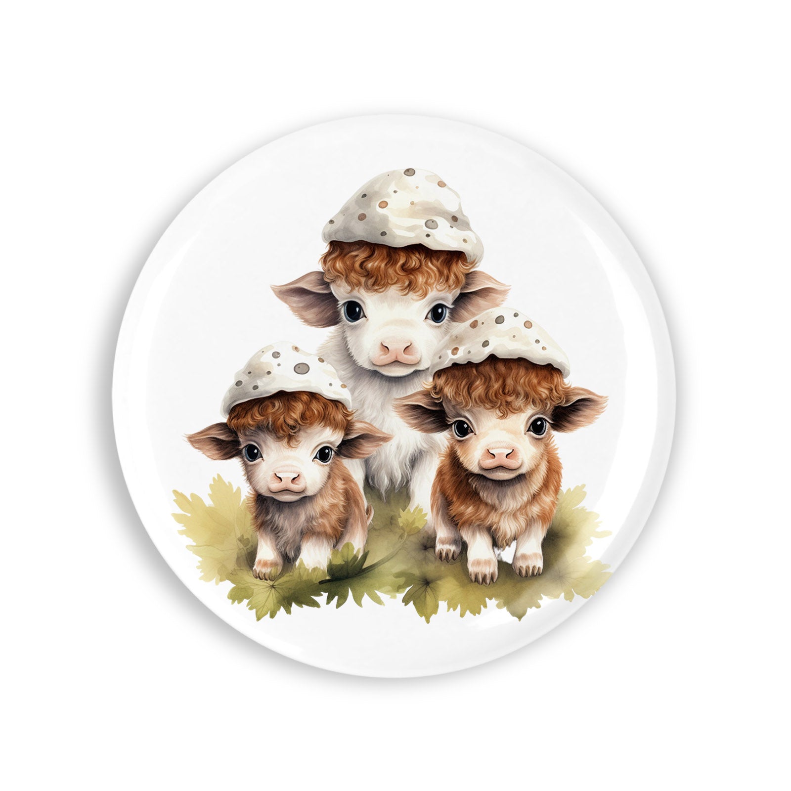 Set 4 insigne, Vacutele pe frunze, NO1377, Metal, 44 mm, Multicolor