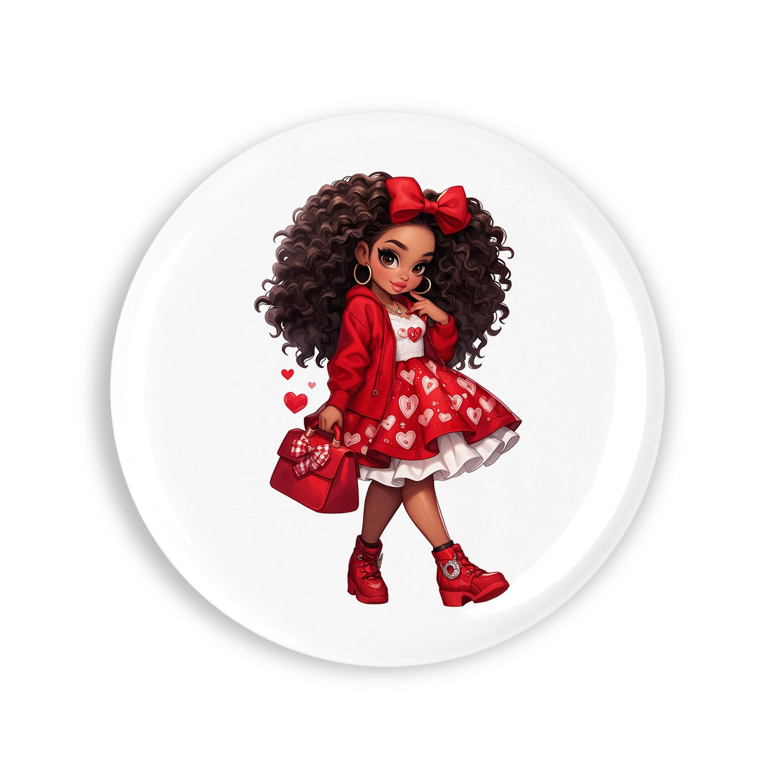 Set 4 insigne, Valentine Girl Fata cu ghetute rosii, NO1859, Metal, 44 mm, Multicolor
