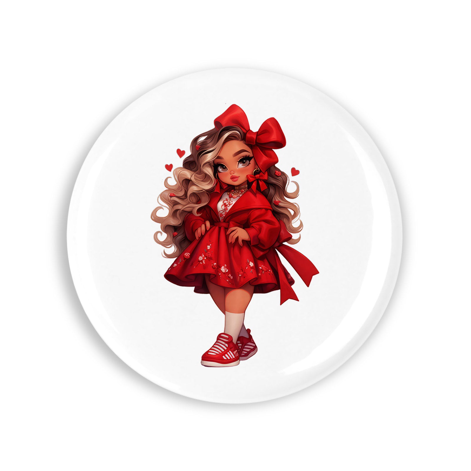 Set 4 insigne, Valentine Girl Fata cu tenesi, NO1159, Metal, 44 mm, Multicolor