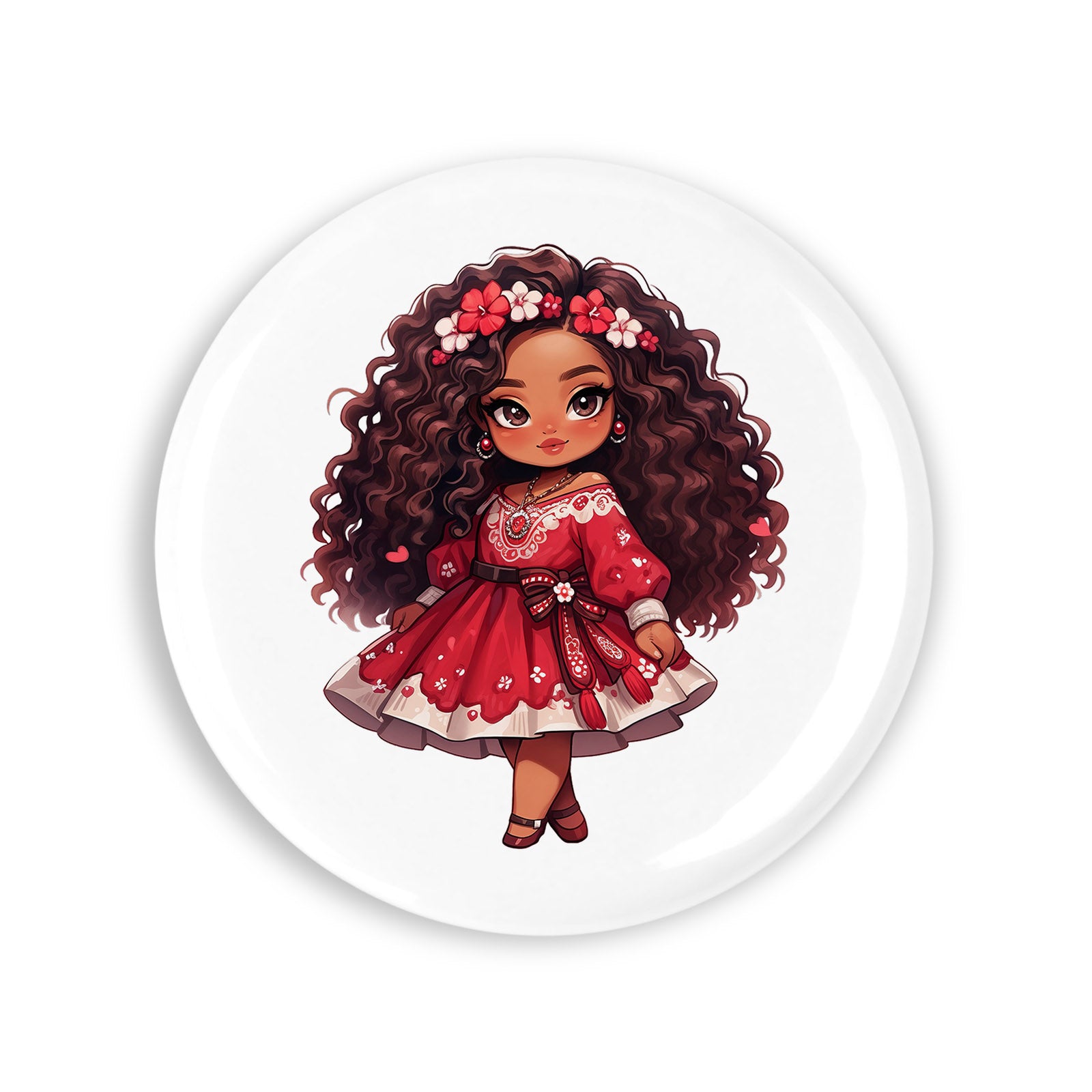 Set 4 insigne, Valentine Girl Fata din Hawai, NO170, Metal, 44 mm, Multicolor
