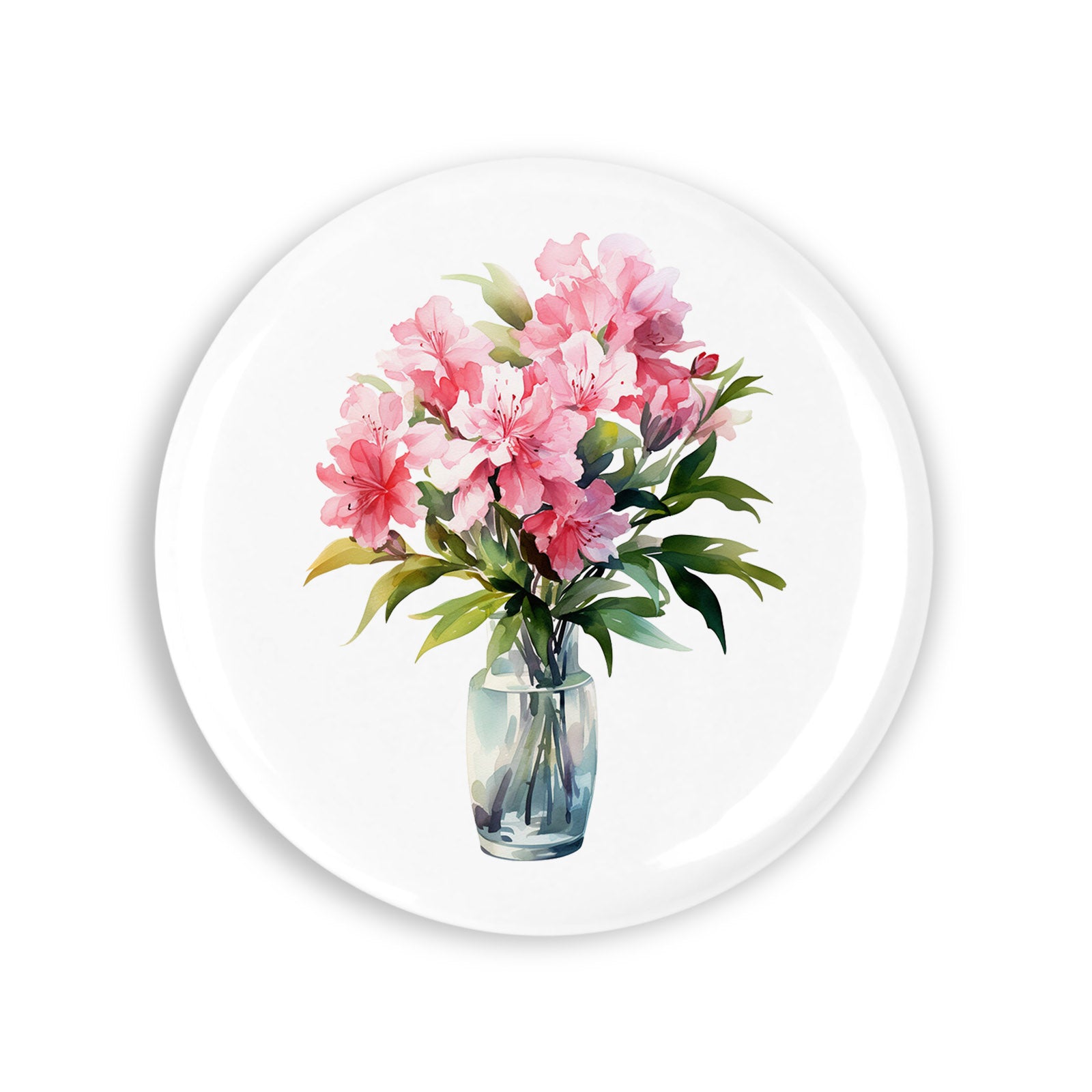 Set 4 insigne, Vaza transparenta cu azalee, NO1050, Metal, 44 mm, Multicolor