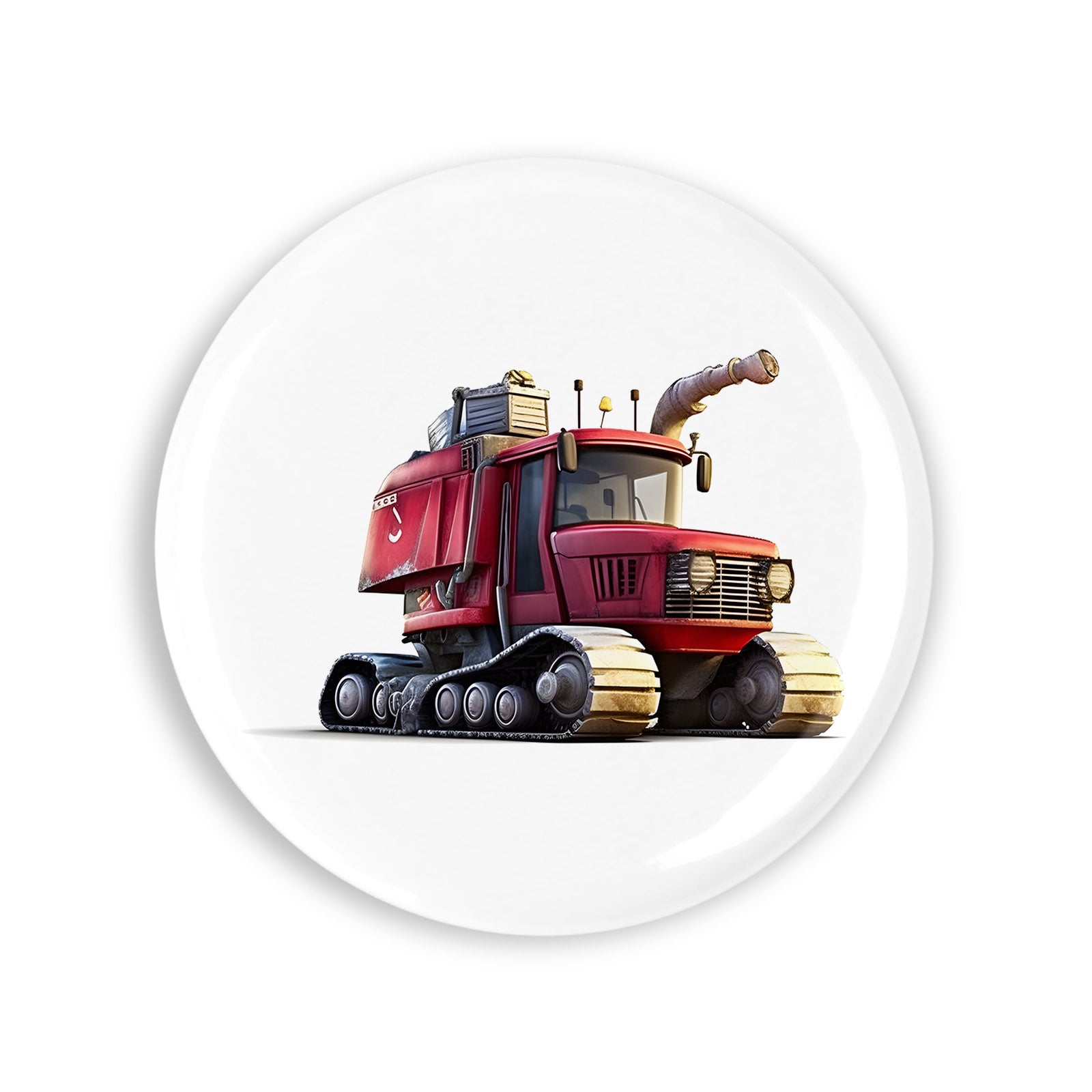Set 4 insigne, Vehicol agricol rosu cu senile, NO5687, Metal, 44 mm, Multicolor