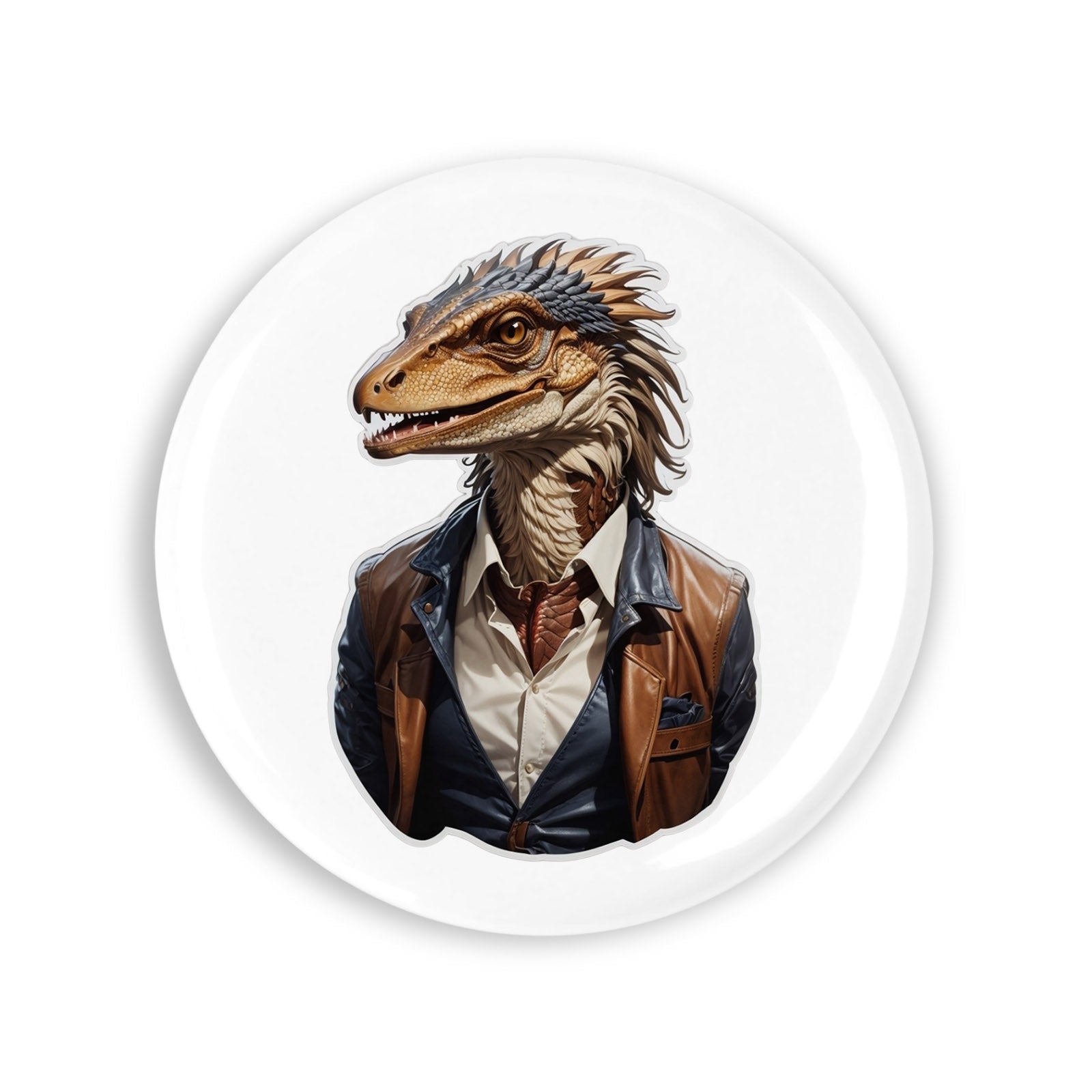 Set 4 insigne, Velociraptor in costum, NO7419, Metal, 44 mm, Multicolor