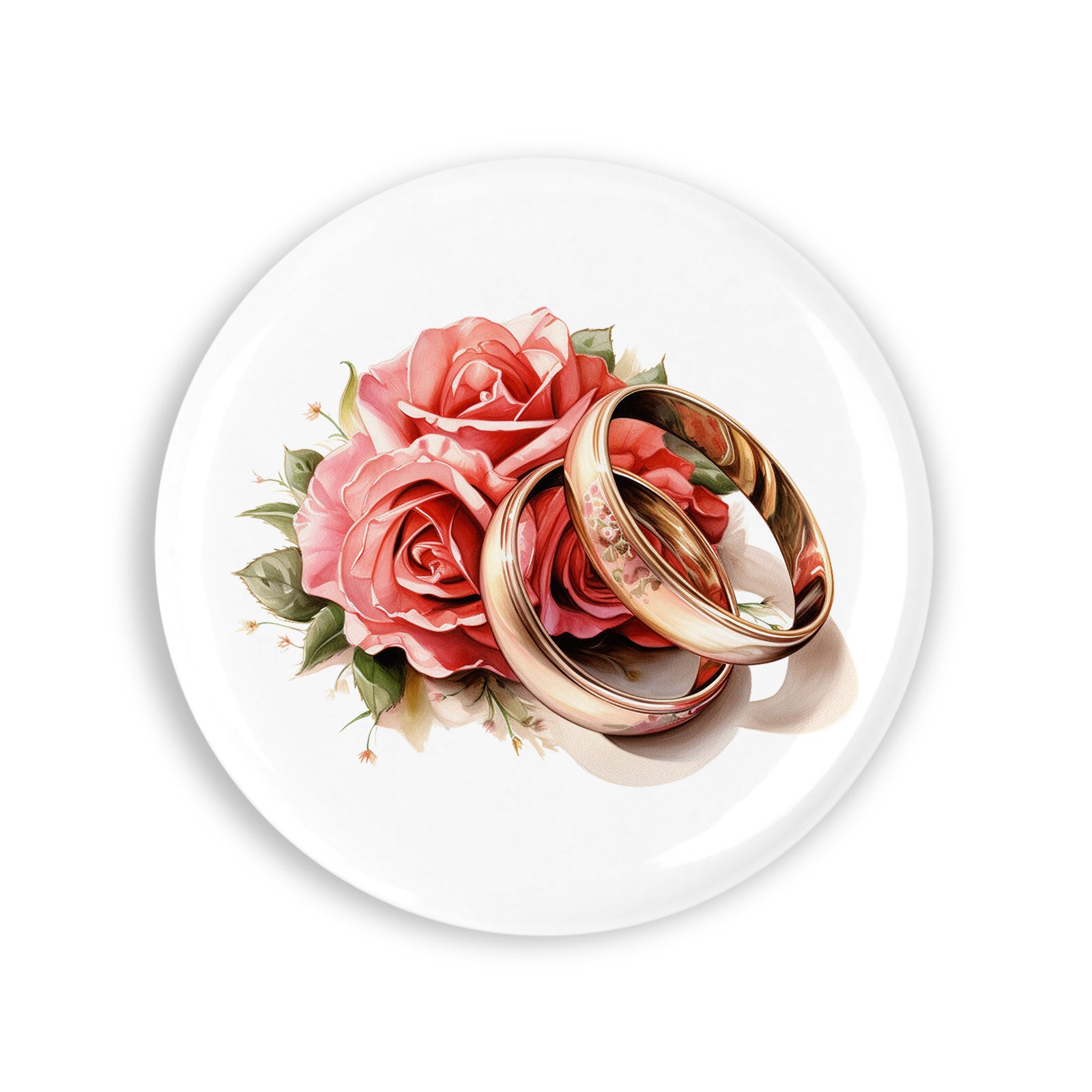 Set 4 insigne, Verighete Parfumul iubirii, NO5019, Metal, 44 mm, Multicolor