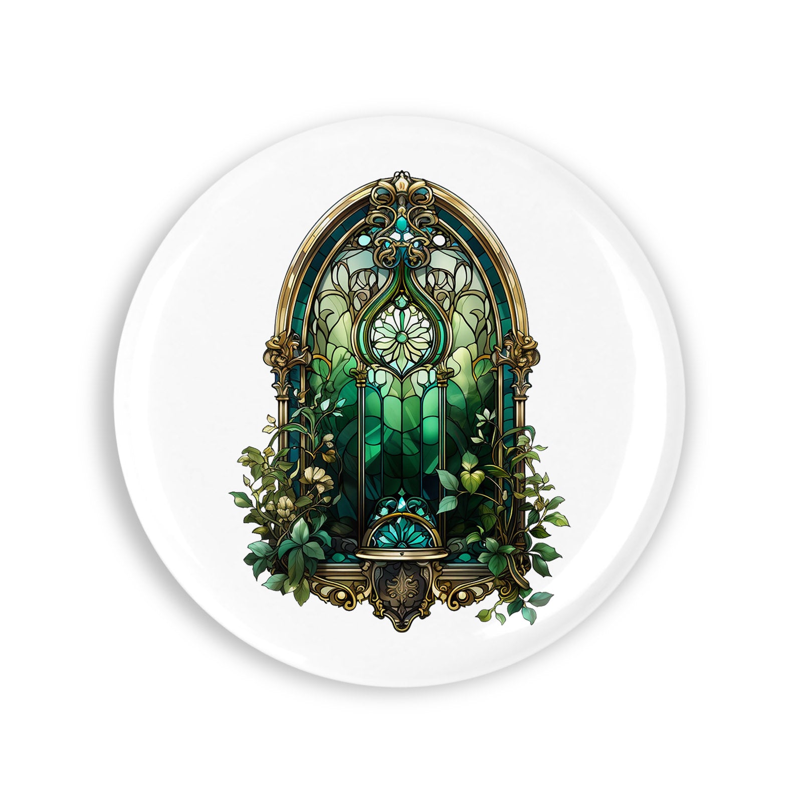 Set 4 insigne, Vitralii de esmerald cu frunze si flori, NO4601, Metal, 44 mm, Multicolor