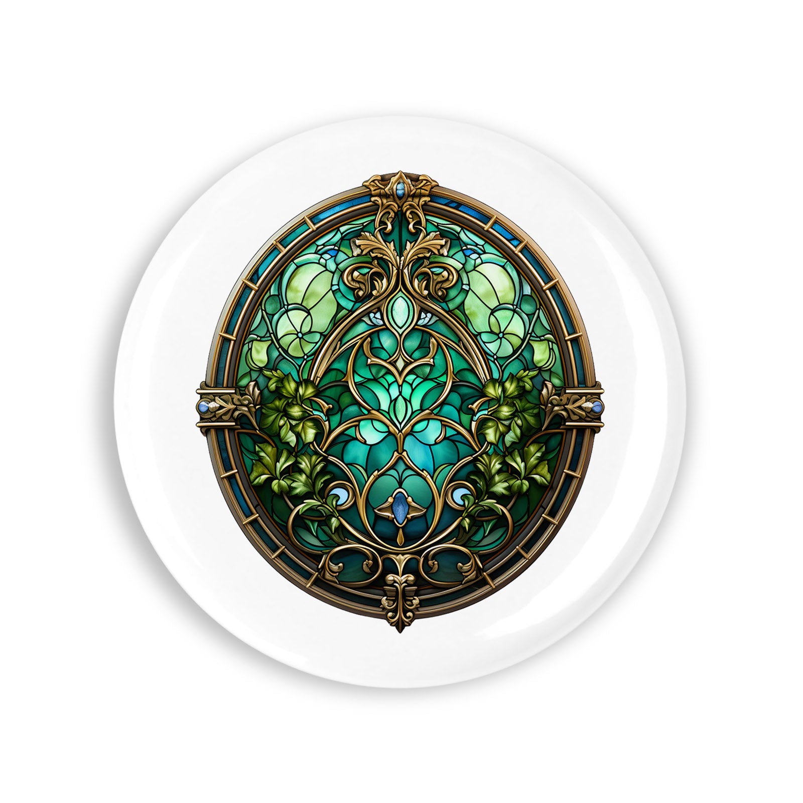 Set 4 insigne, Vitralii de esmerald cu ramuri, NO1672, Metal, 44 mm, Multicolor