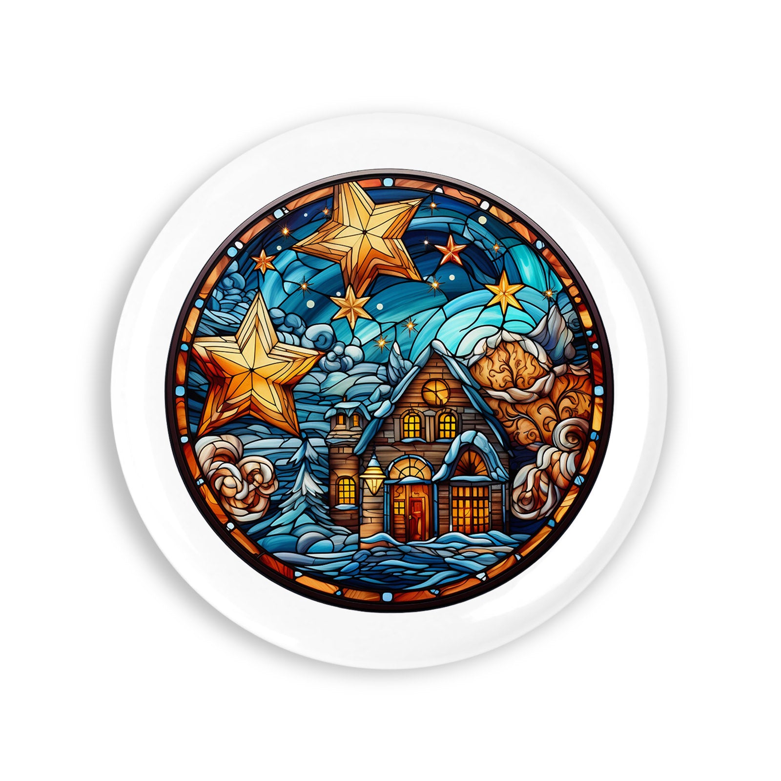 Set 4 insigne, Vitraliu Casa cu stele, NO1569, Metal, 44 mm, Multicolor