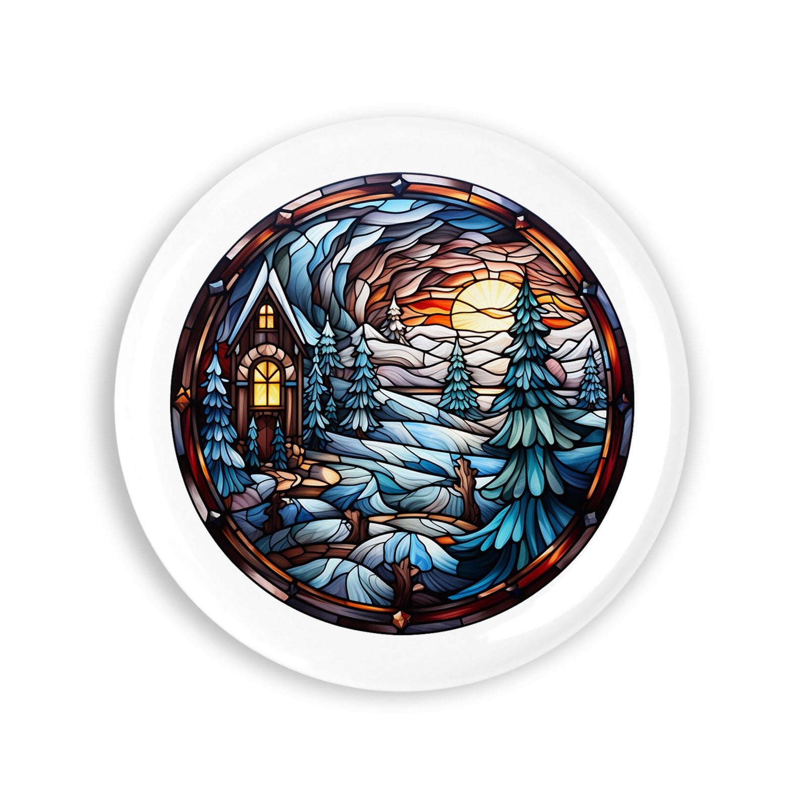 Set 4 insigne, Vitraliu casa luminata, NO2096, Metal, 44 mm, Multicolor