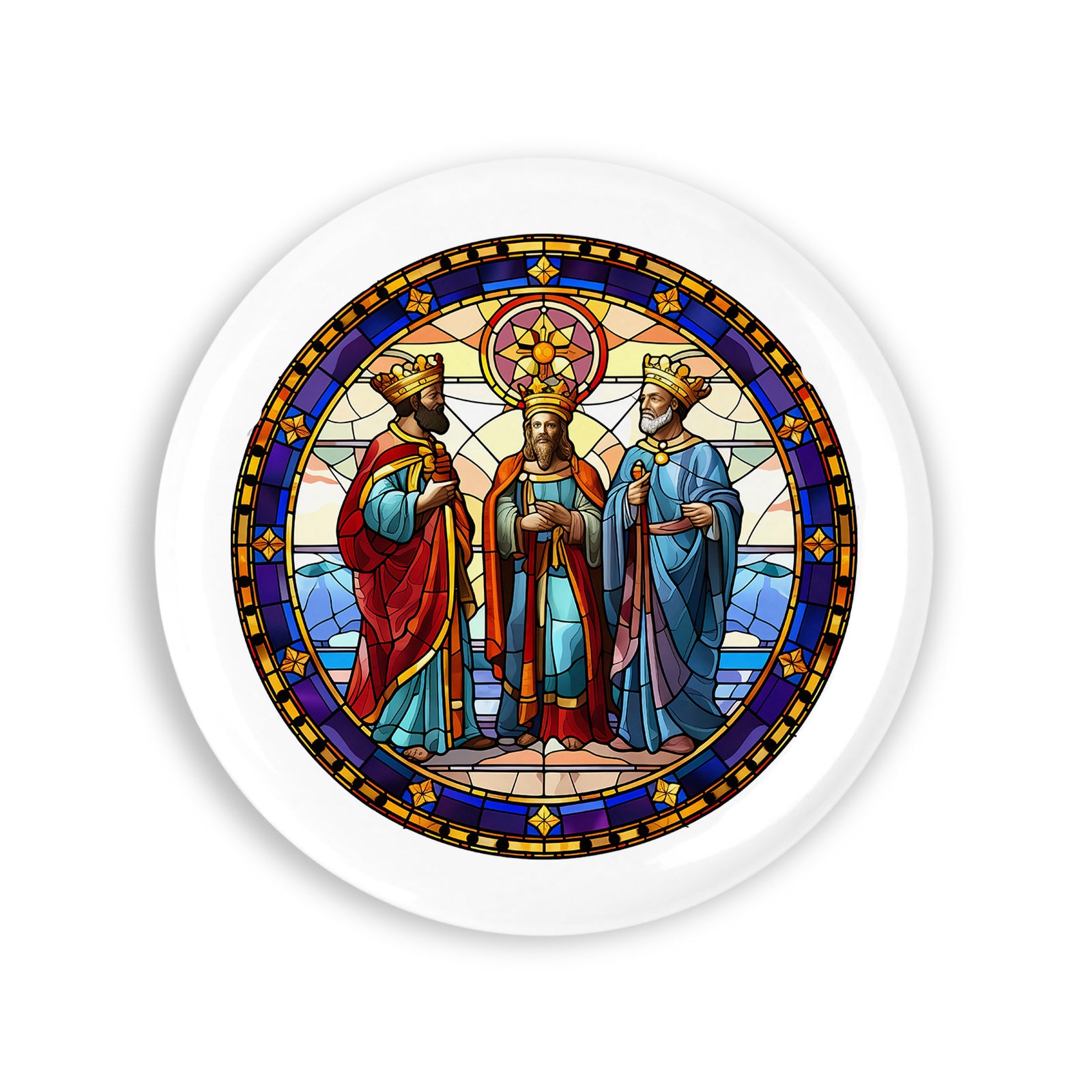 Set 4 insigne, Vitraliu Cei Trei Magi, NO4966, Metal, 44 mm, Multicolor