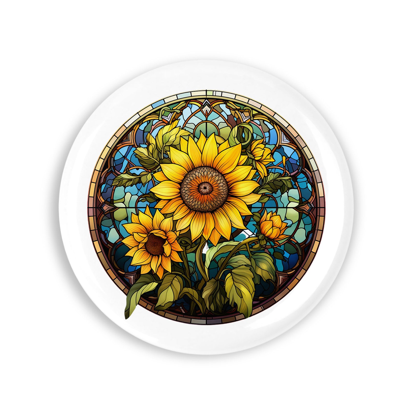 Set 4 insigne, Vitraliu floarea soarelui cu puii, NO1313, Metal, 44 mm, Multicolor