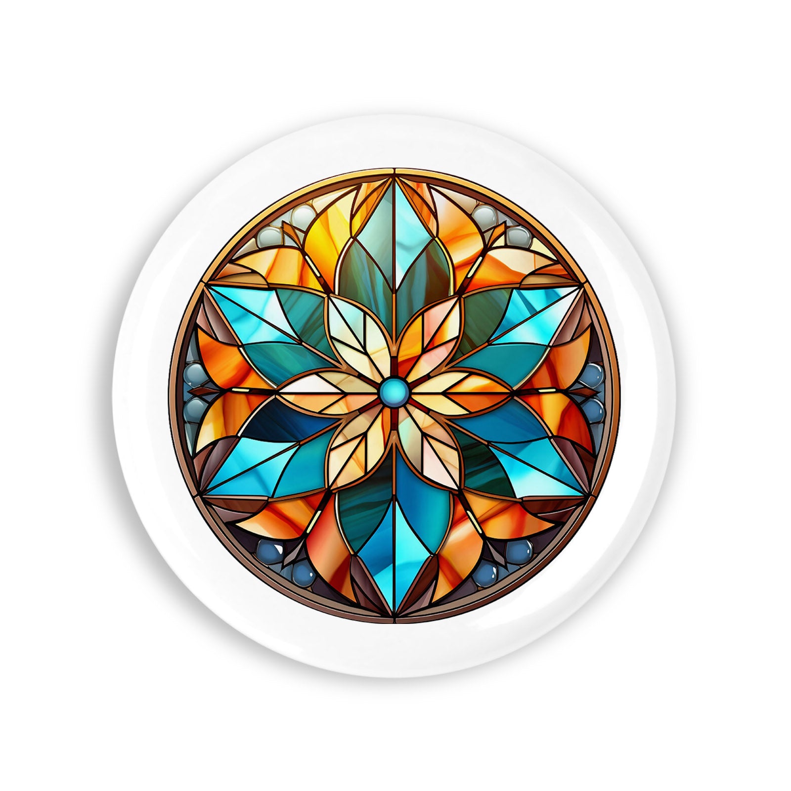 Set 4 insigne, Vitraliu floral, NO5350, Metal, 44 mm, Multicolor