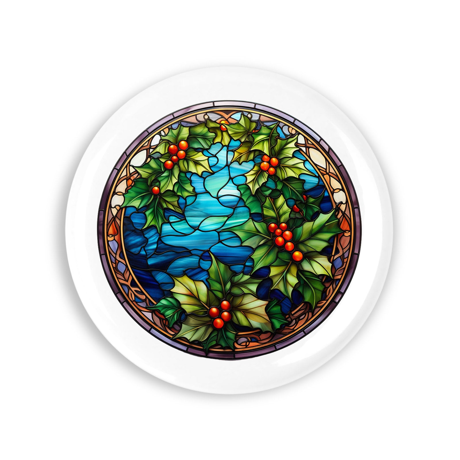 Set 4 insigne, Vitraliu Flori de craciun, NO6125, Metal, 44 mm, Multicolor
