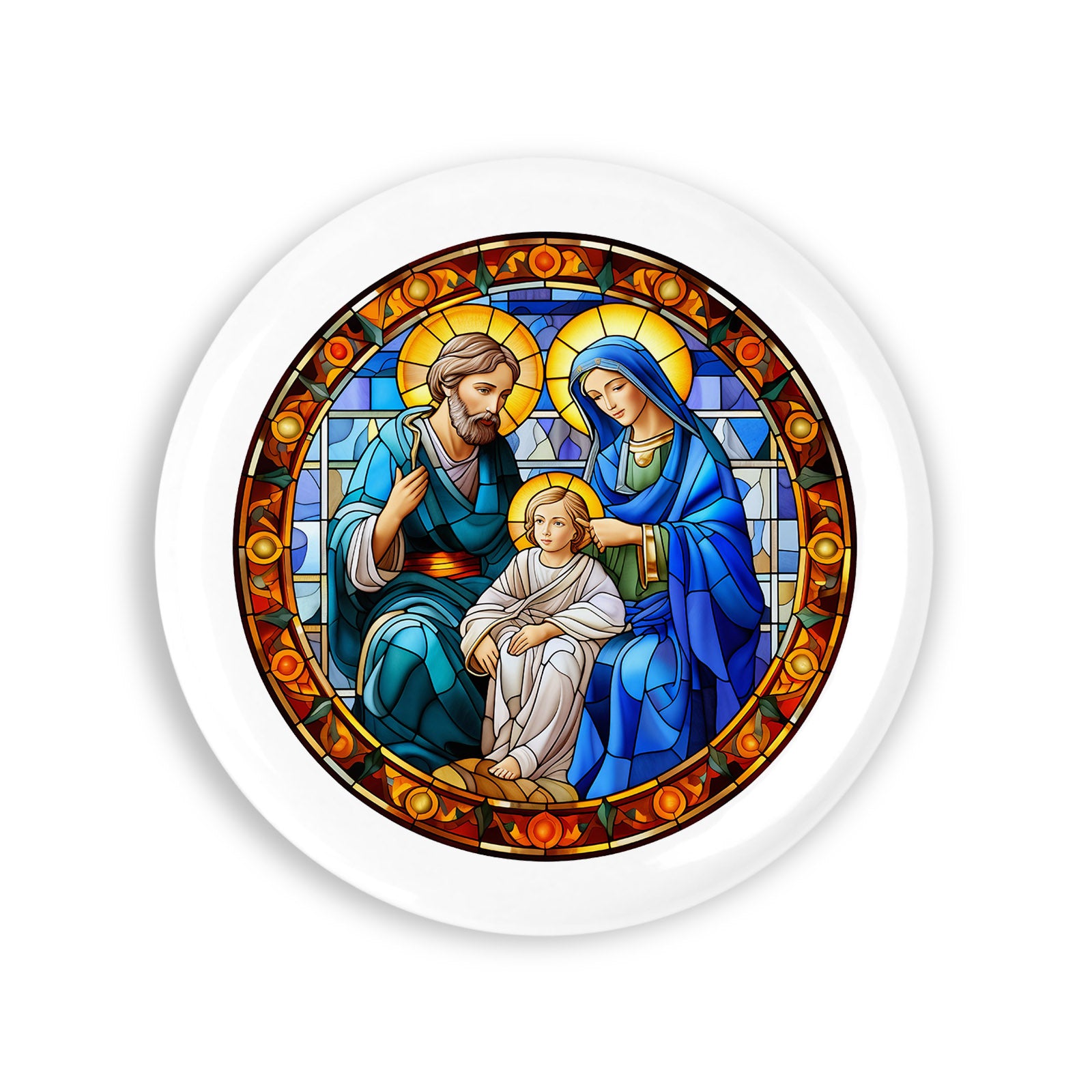 Set 4 insigne, Vitraliu Iisus Sfanta Maria si Iosif, NO3117, Metal, 44 mm, Multicolor