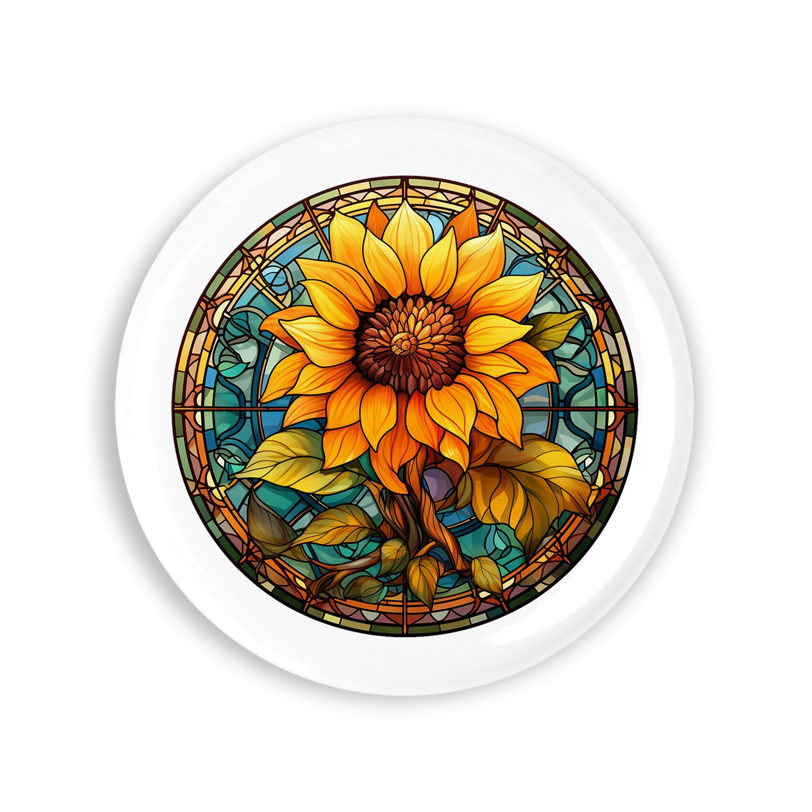 Set 4 insigne, Vitraliu rotund floarea soarelui cu seminte, NO6418, Metal, 44 mm, Multicolor