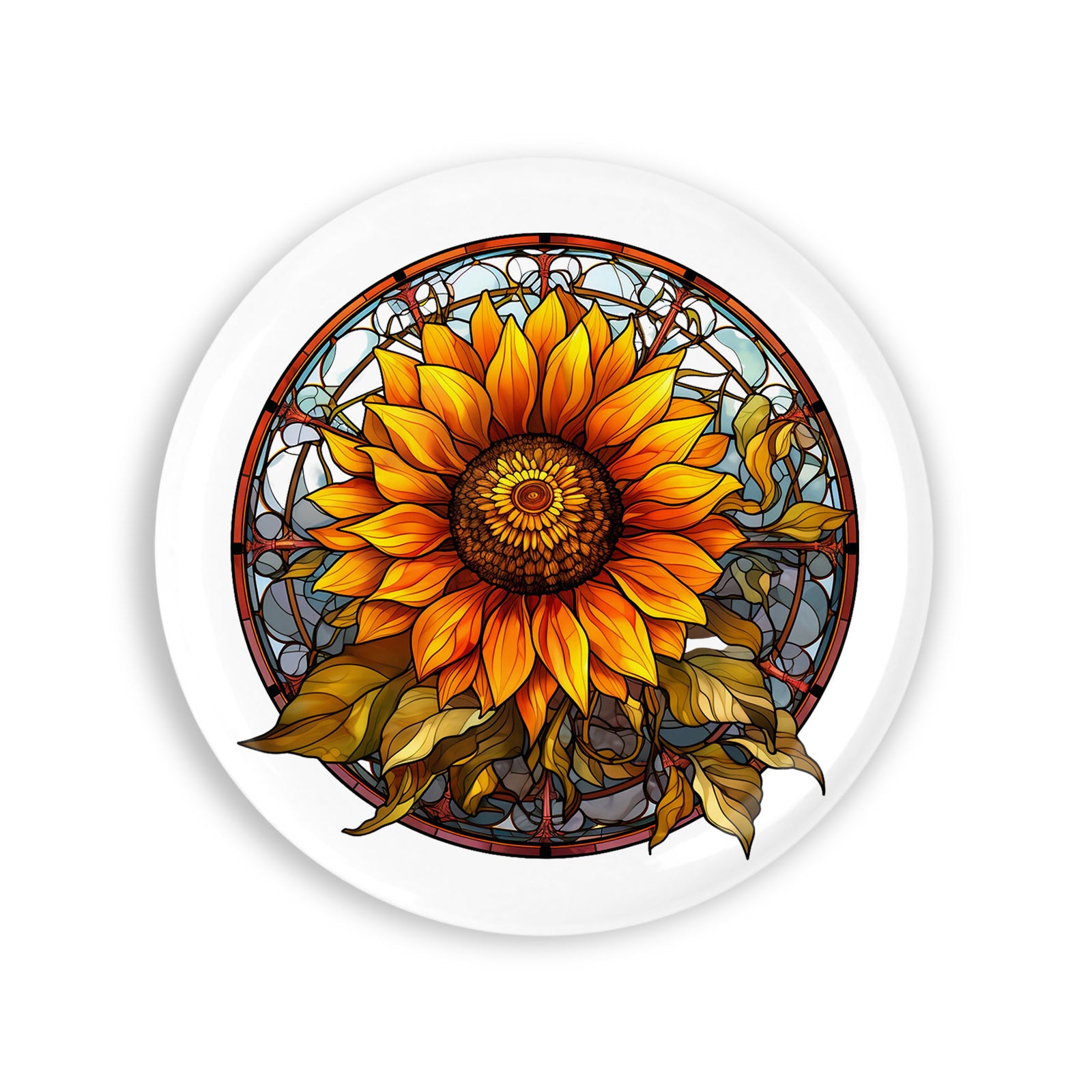 Set 4 insigne, Vitraliu rotund floarea soarelui, NO5726, Metal, 44 mm, Multicolor